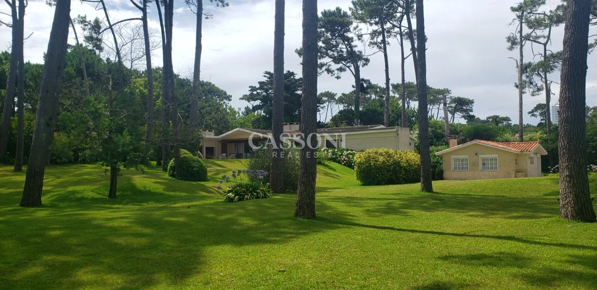Gran terreno ocupando manzana entera de 3.436 m2 Acceso a 4 calles, en barrio residencial Cantegril Ubicación estratégica y residencial a 300 metros del mar Casa de amplias dimensiones de 3 dormitorios en suite más servicio Piscina exterior Casa de huéspedes de 2 dormitorios y 2 baños Esta propiedad presenta proyecto aprobado de construcción de edificio Consulte por más información. Referencia Interna : Tera-1611