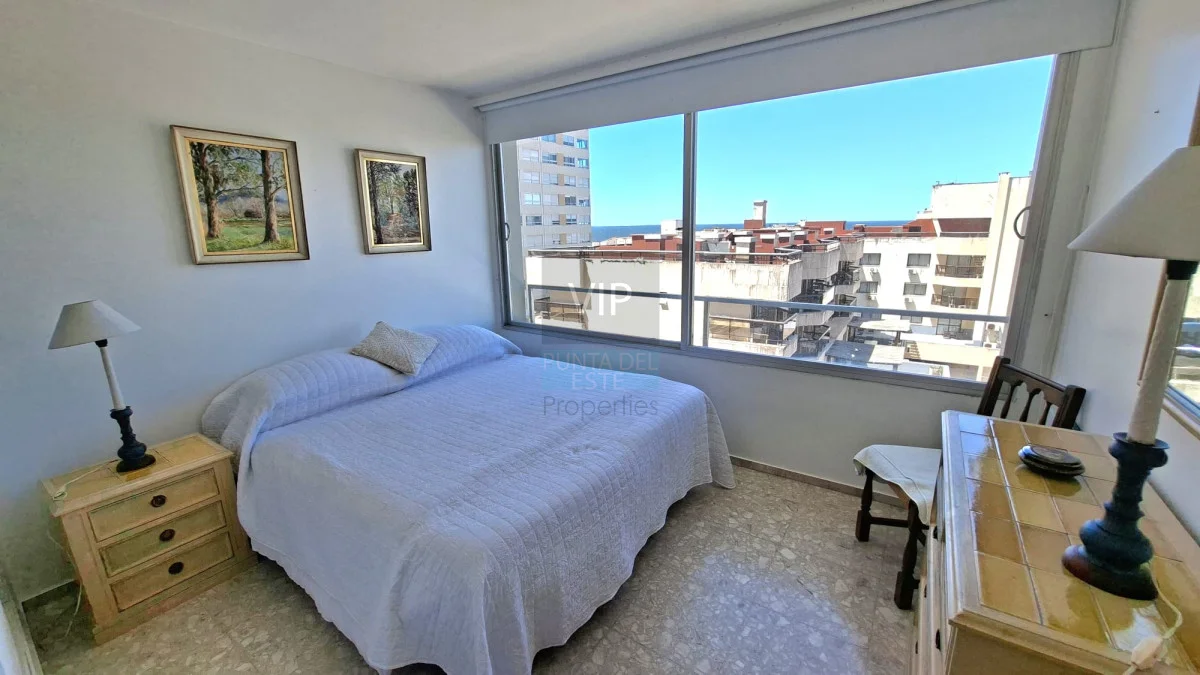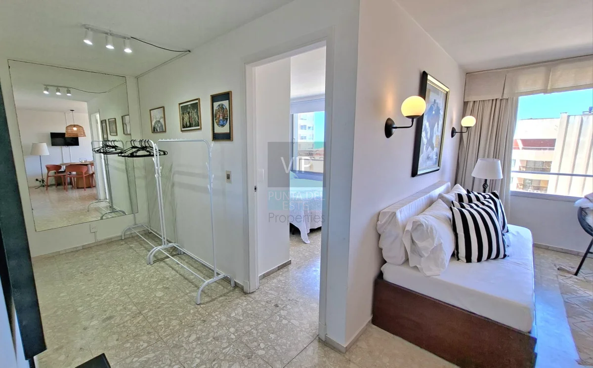 Impecable apartamento en edificio clásico en Península, de 1 dormitorio y medio, 1 baño, cómodo living comedor con vista y cocina. Cuenta con garaje en subsuelo, portería y vigilancia por cámaras; servicio de mucama. Excelente ubicación. Consulte por venta.