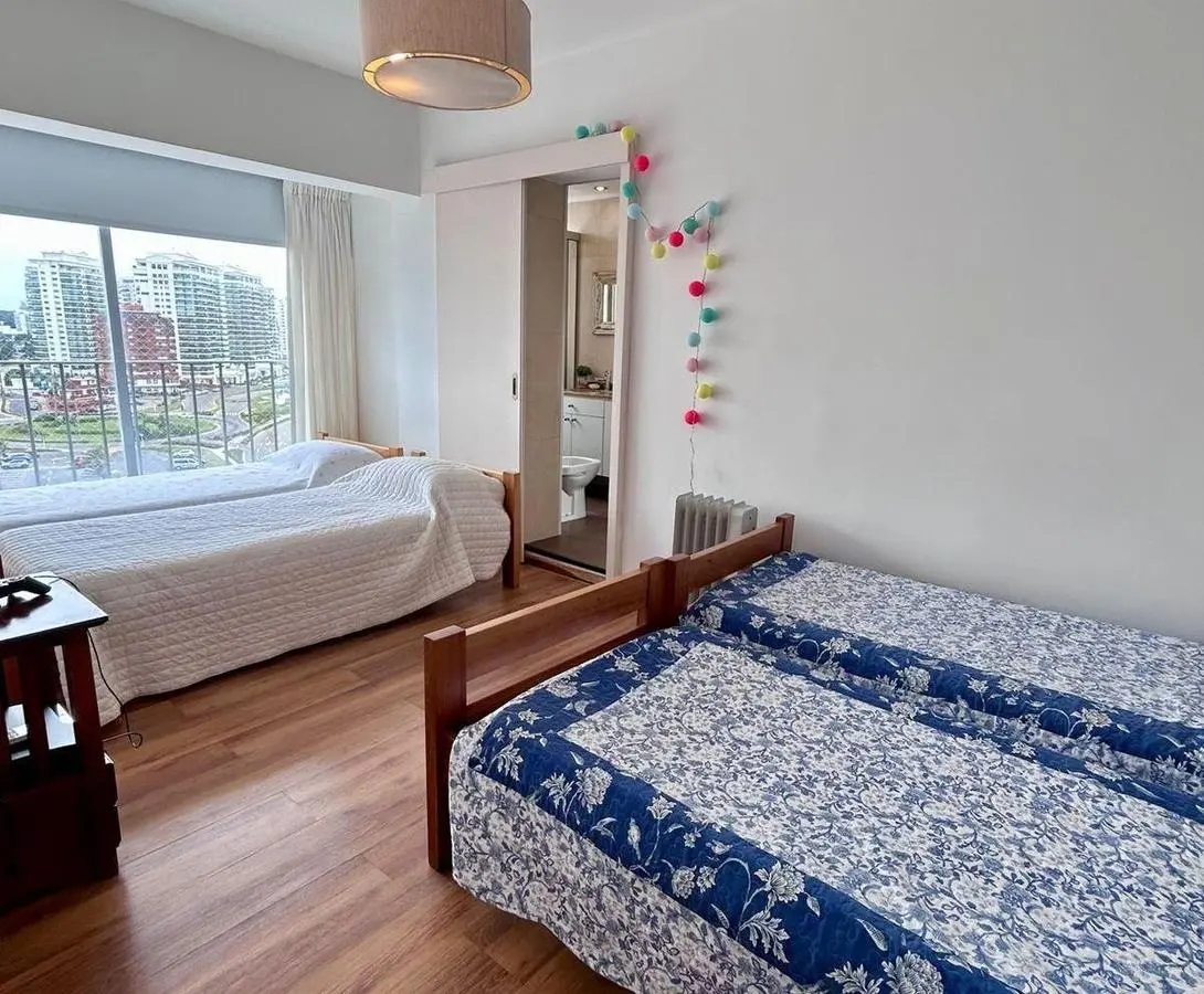 CASASWEB(212113) En uno de los edificios mas emblematicos de Punta del Este se encuentra el apartamento de 2 dormitorios y 2 banos totalmente reciclado.Con una vista impresionante parcial sobre la Playa Emir y totalmente amoblado con aire acondicionado en el dormitorio principal y living, cocina independiente y pisos flotantes. Tiene doble cortina roller y blackout. Ideal para el alquiler de temporada y disfrutar todo el ano. Cuenta con porteria los 24 hrs del dia. Ver mas detalles en casasweb.com?212113