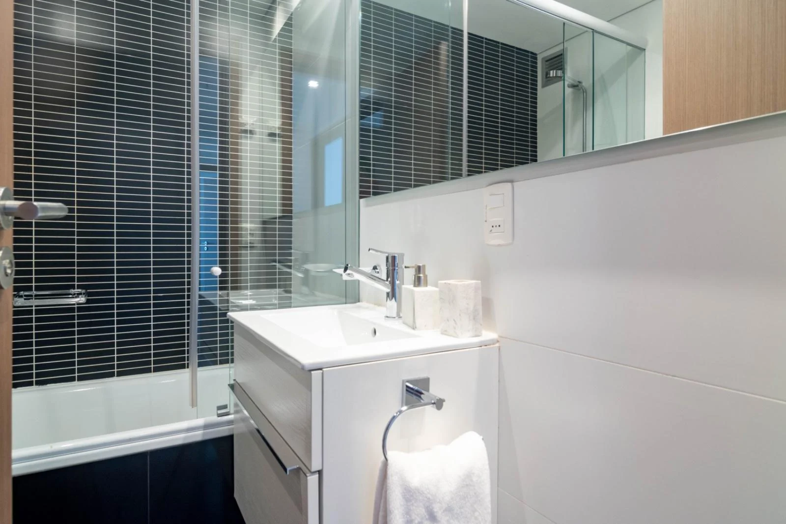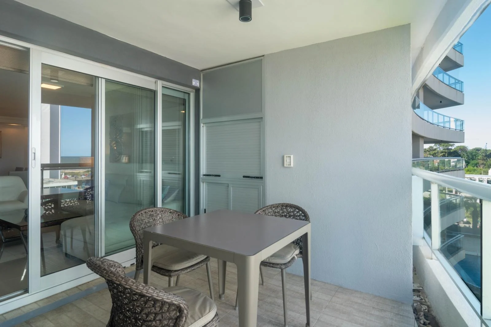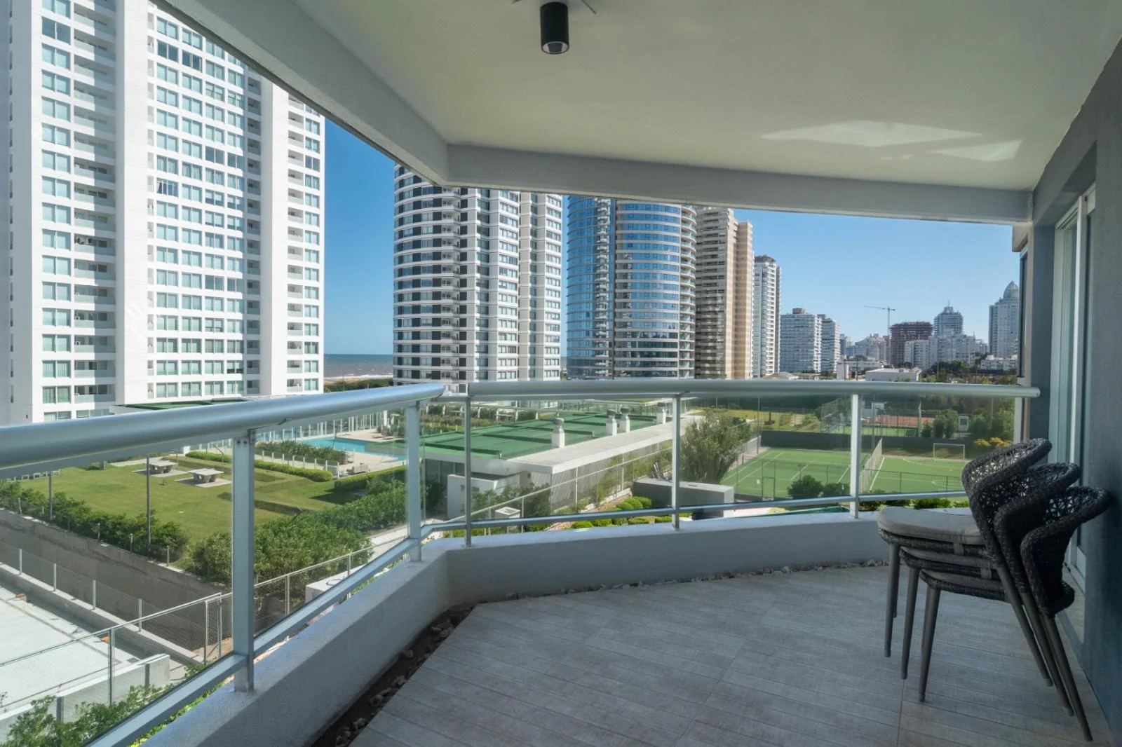 Torre con todos los amenities: Servicio de playa, Servicio de mucama, Piscina exterior climatizada, Piscina interior, climatizada con hidromasaje, Sauna, Gimnasio, Cancha de tenis, Barbacoas, Sala de juegos, Microcine, Recepción 24 hs, parrillero exclusivo, Estacionamiento para visitas.