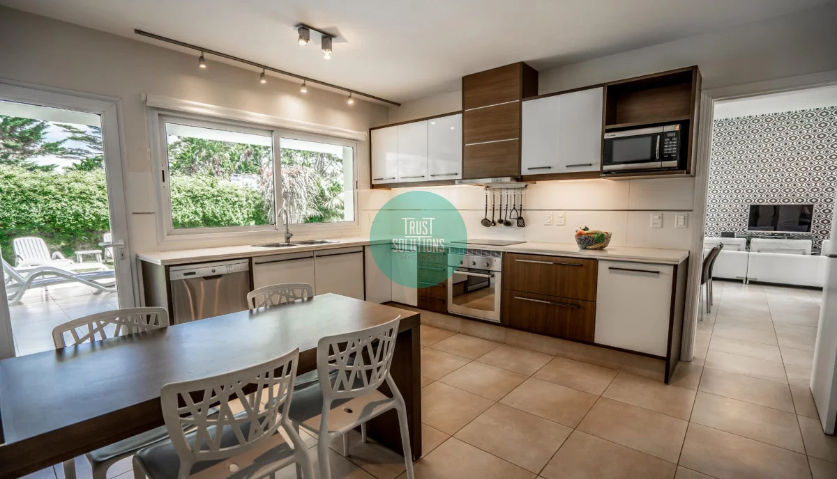 Cocina con desayunador diario y vista al jardín