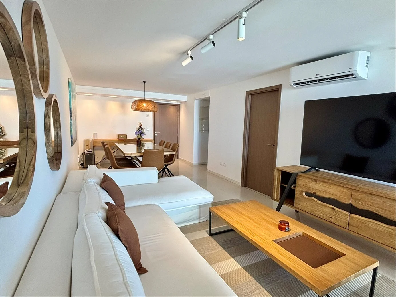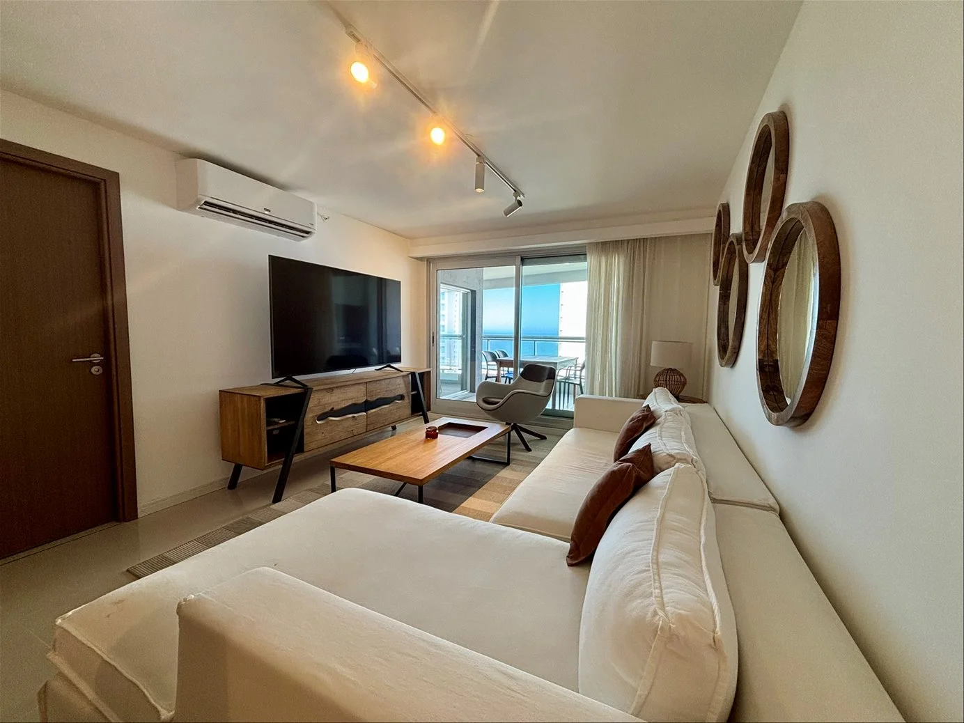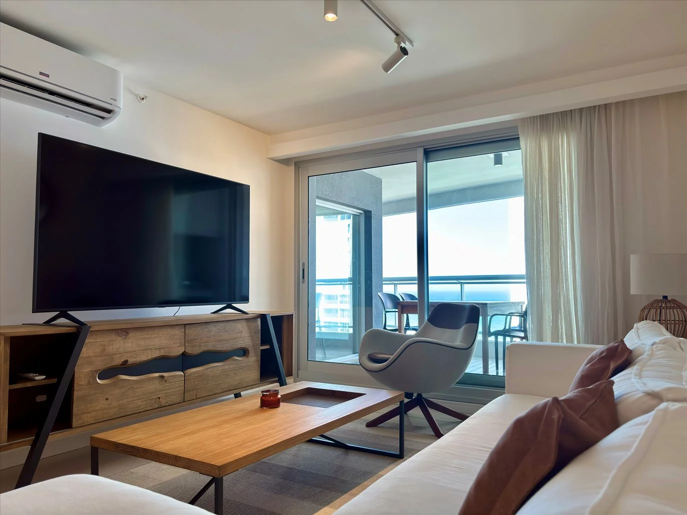 Amplio living-comedor, que se extiende hacia un balcón aterrazado con una vista directa al océano, ideal para disfrutar del paisaje con un parrillero privado. 2 baños completos y un toilette, perfectos para mayor comodidad.