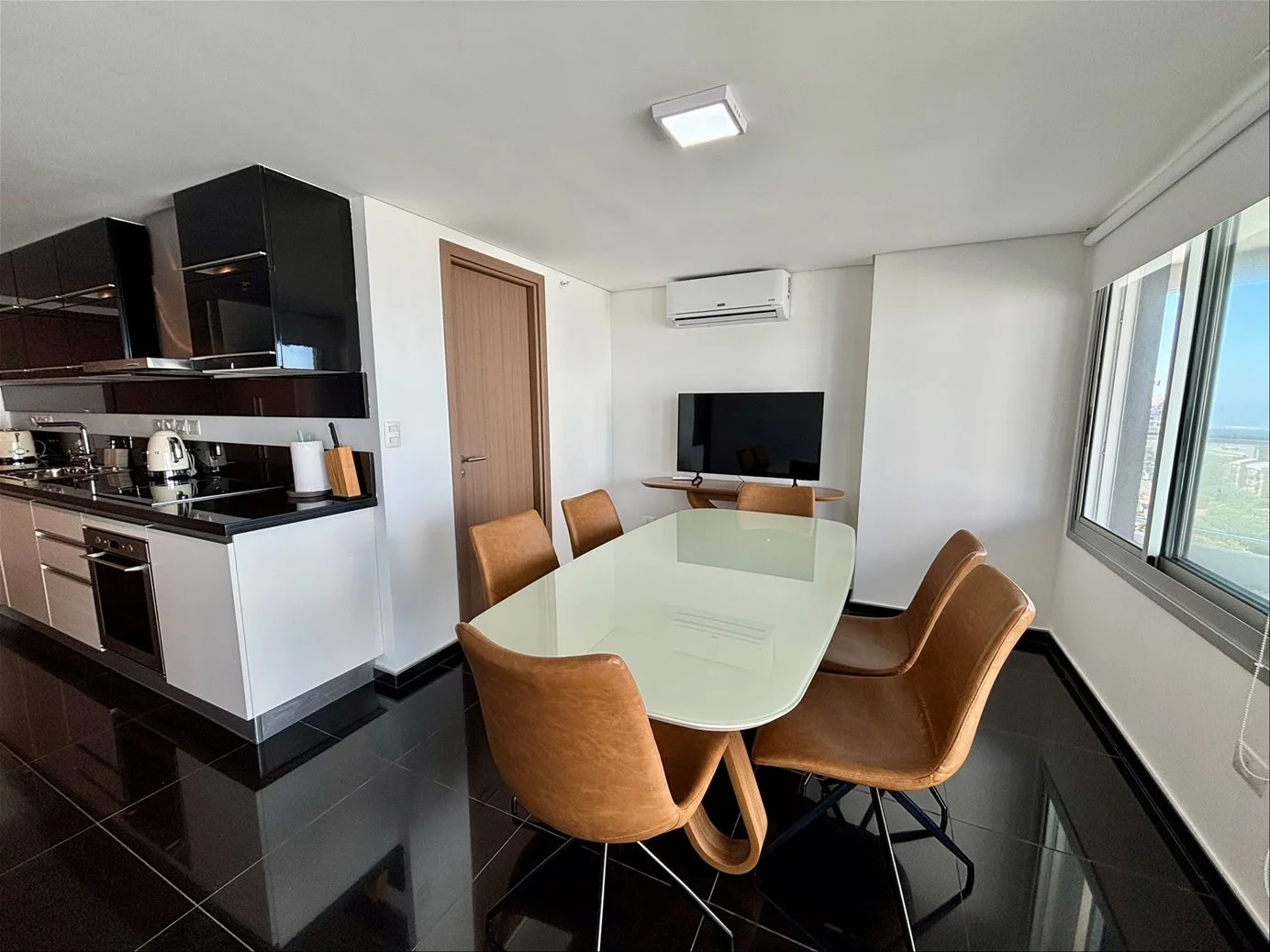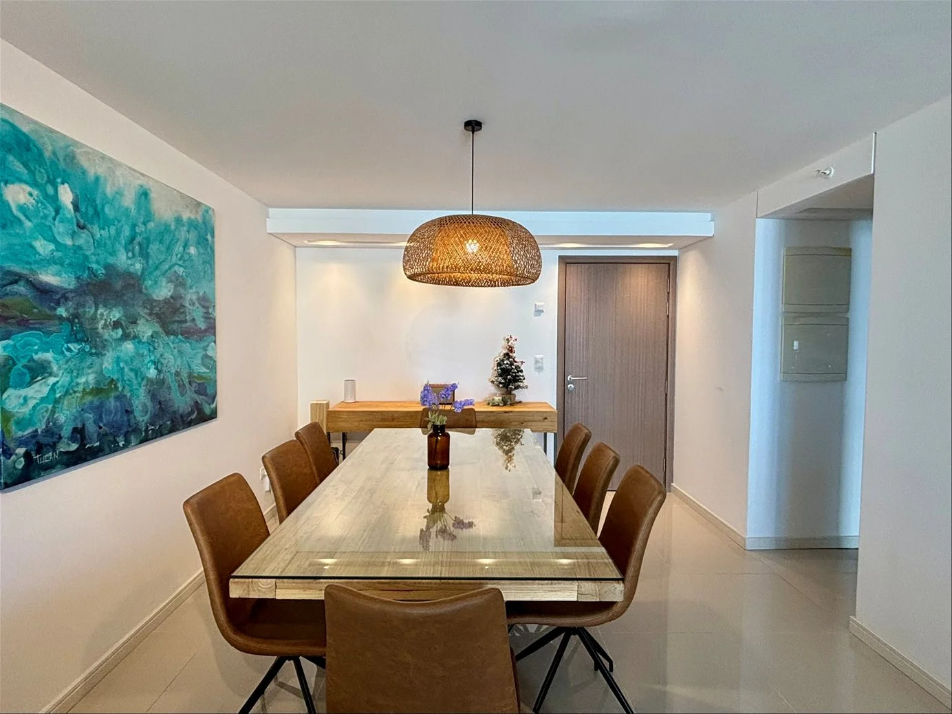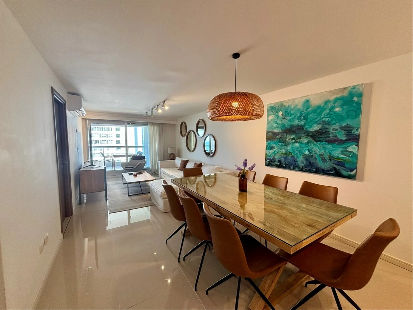 Amplio living-comedor, que se extiende hacia un balcón aterrazado con una vista directa al océano, ideal para disfrutar del paisaje con un parrillero privado. 2 baños completos y un toilette, perfectos para mayor comodidad.