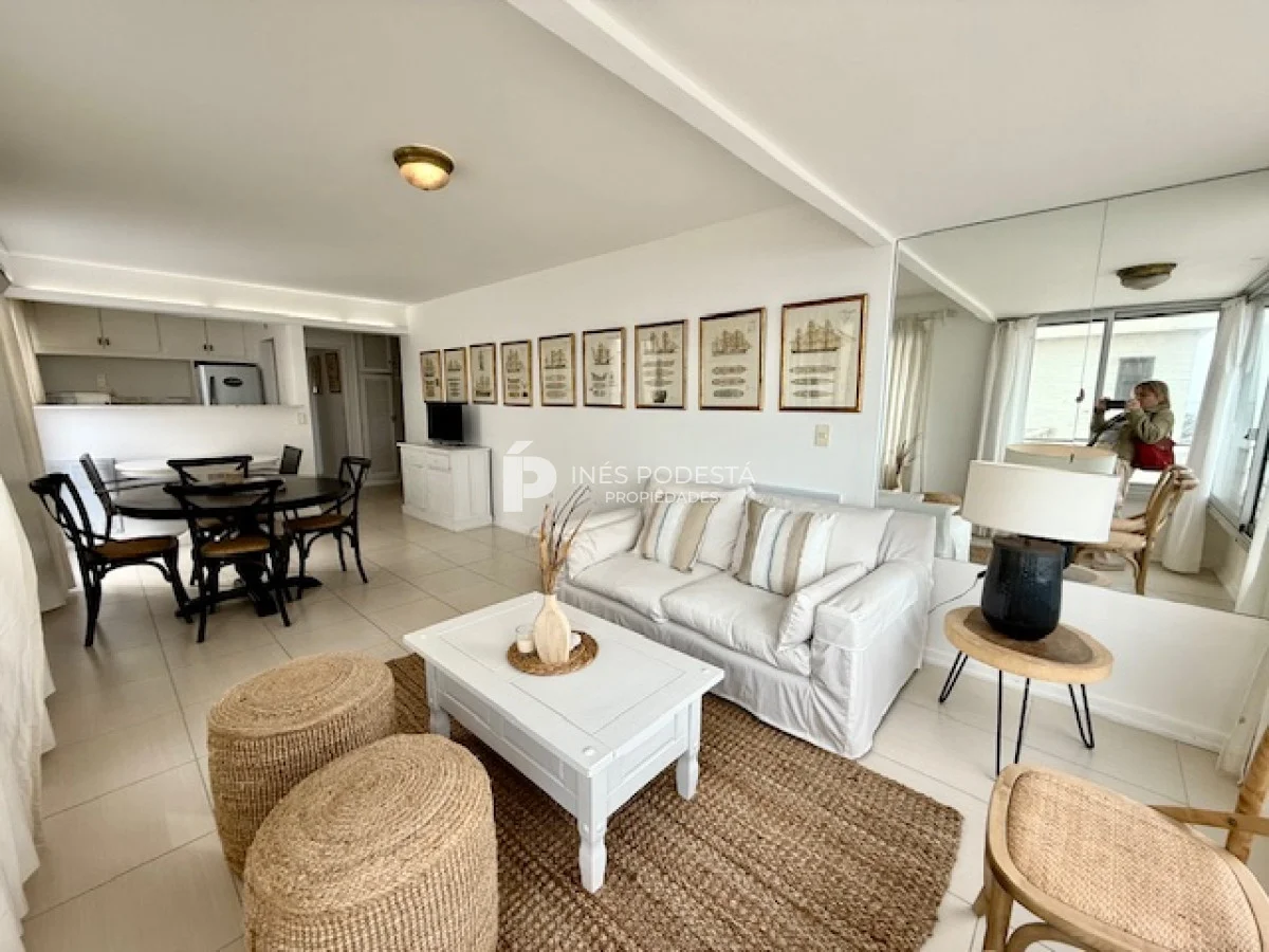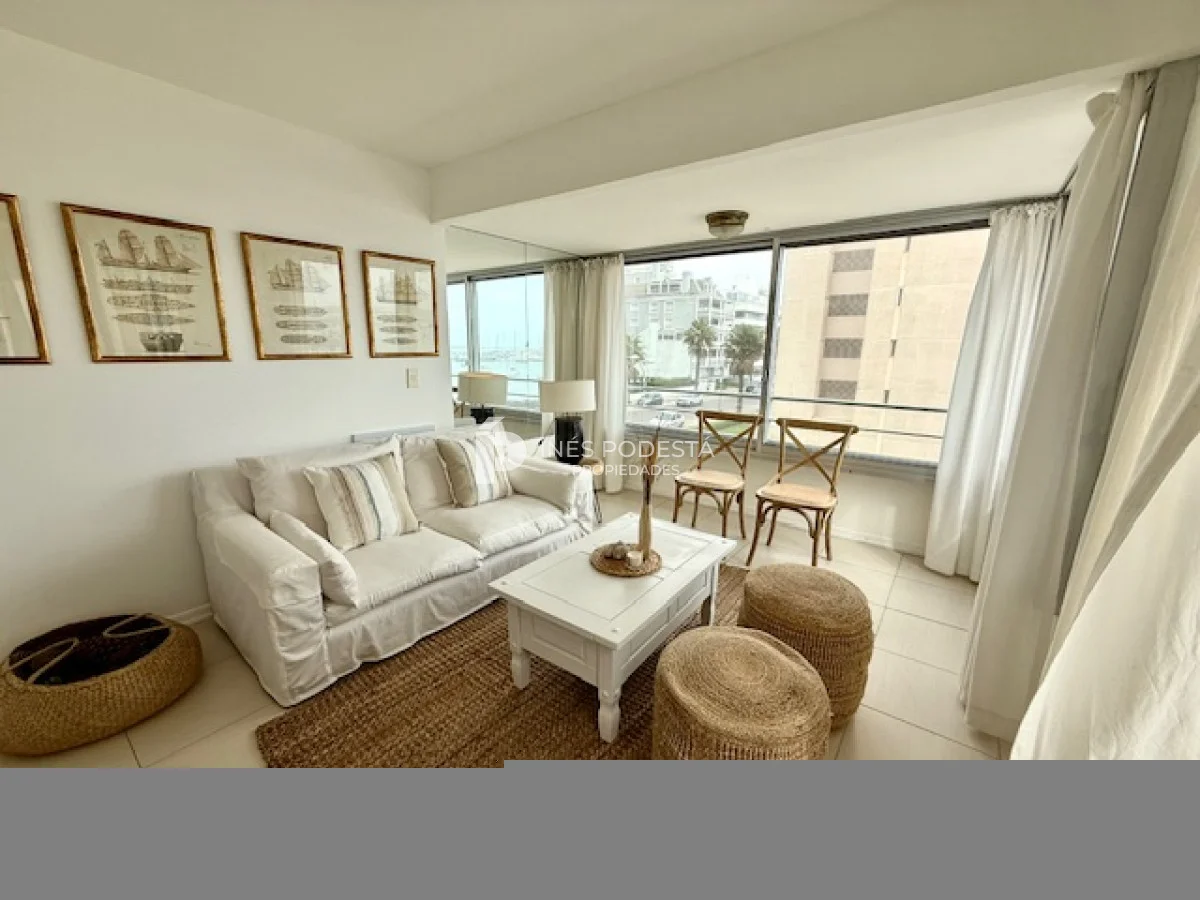 Muy lindo departamento a pasos del Puerto de Punta del Este, 65 m2 propios más 30 m2 de terraza, living comedor, gran terraza con parrillero, cocina americana, 3 dormitorios, 2 baños (principal en suite), garage, portería y servicio de mucama 6 veces a la semana.