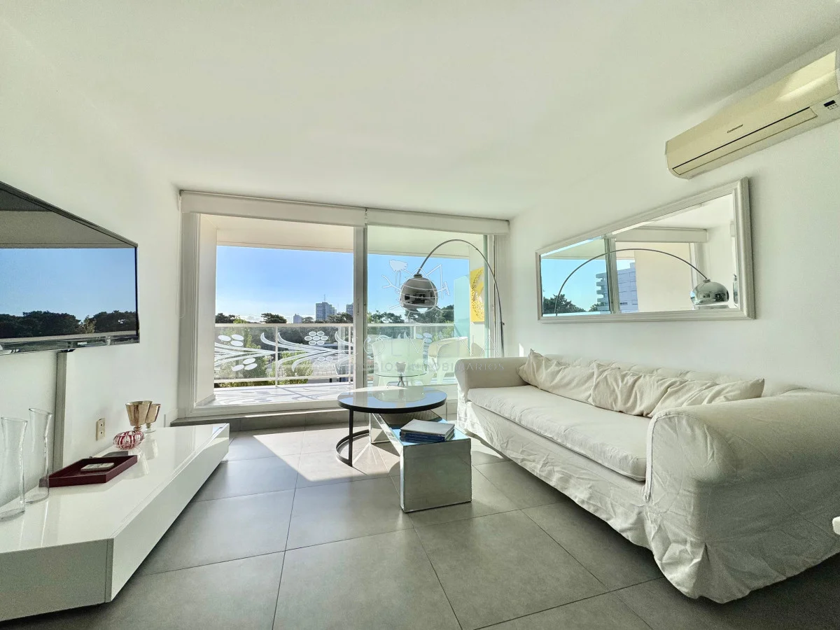 Buen apartamento de un dormitorio y medio en Yoo Punta del Este, muy bien equipado, cocina integrada a un living comedor amplio con balcón.