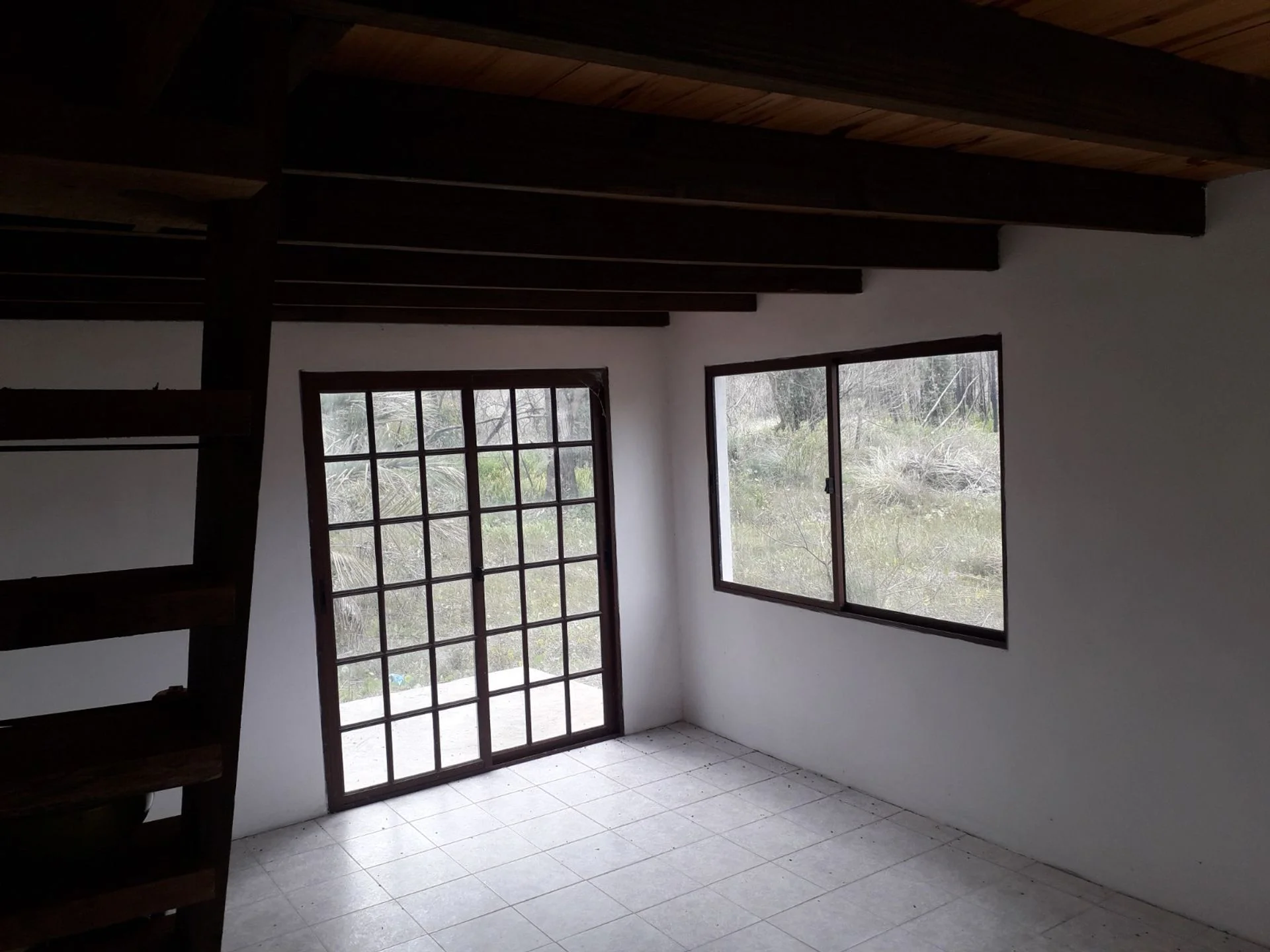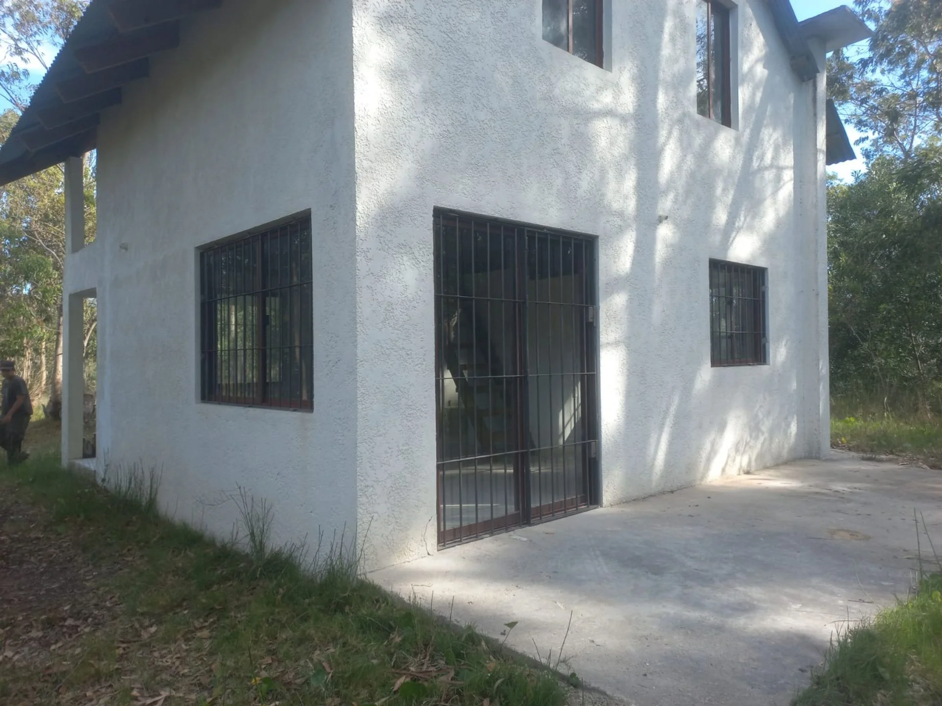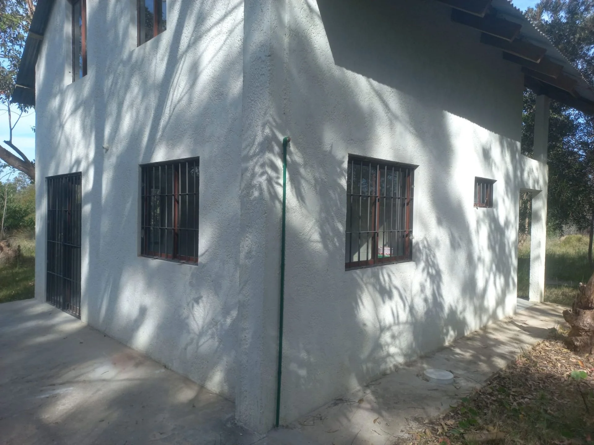 La edificación es una casa de dos pisos, con 30 m2 edificados cerrados en planta baja compuesta por living comedor, cocina y baño. Y en planta alta también 30 m2 cerrados formado por dos dormitorios. Posee unos 9 m2 abiertos, techados de porche en la planta baja y lo mismo en el segundo piso como terraza. Posee amplio terreno. Construcción sin uso, con rejas en todas las ventanas y puerta de ingreso de la planta inferior.