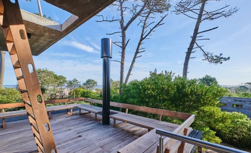 El principal cuenta con una gran vista al mar! amplio living comedor con cocina integrada, ventanales grandes con salida al deck donde se encuentra el área de la parrilla, con toilette,  living exterior y mesa para asados. Muy agradable y con piscina climatizada. En el segundo piso la máster suite con terraza y azotea.