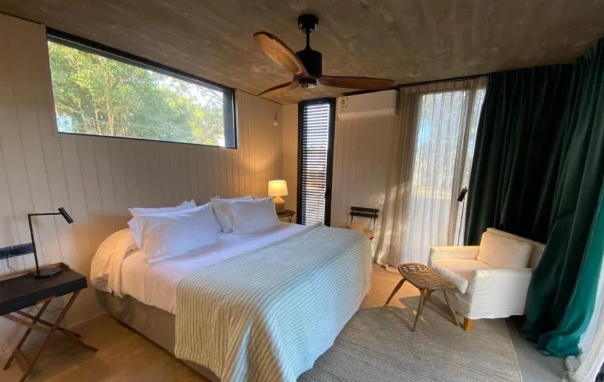 Aire acondicionado en todos sus ambientes, alarma, ingreso con cerradura con cocida o huella digital y camas de seguridad.