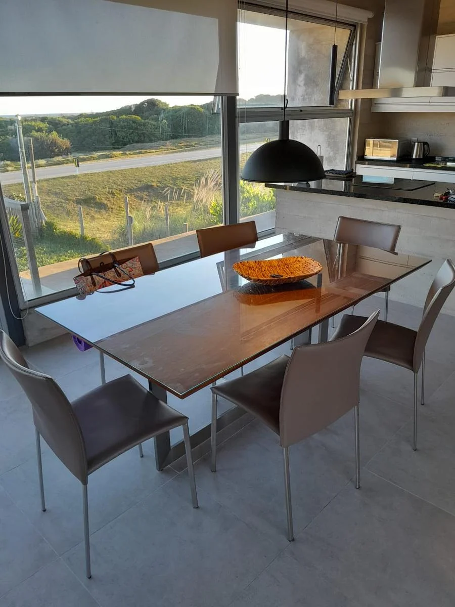 Desde el living hay salida a los deck tanto hacia el mar, y hacia atras, donde se encuentra la parrilla. Desde éste, se accede a la terraza con fogonero para disfrutar de los mejores atardeceres y vistas mas francas hacia la Bahia de José Ignacio y hacia la Laguna de José Ignacio.