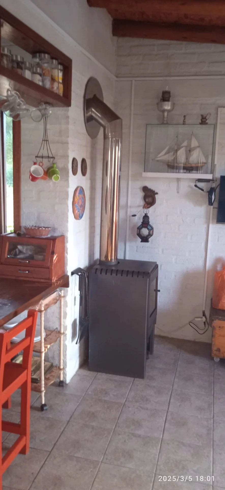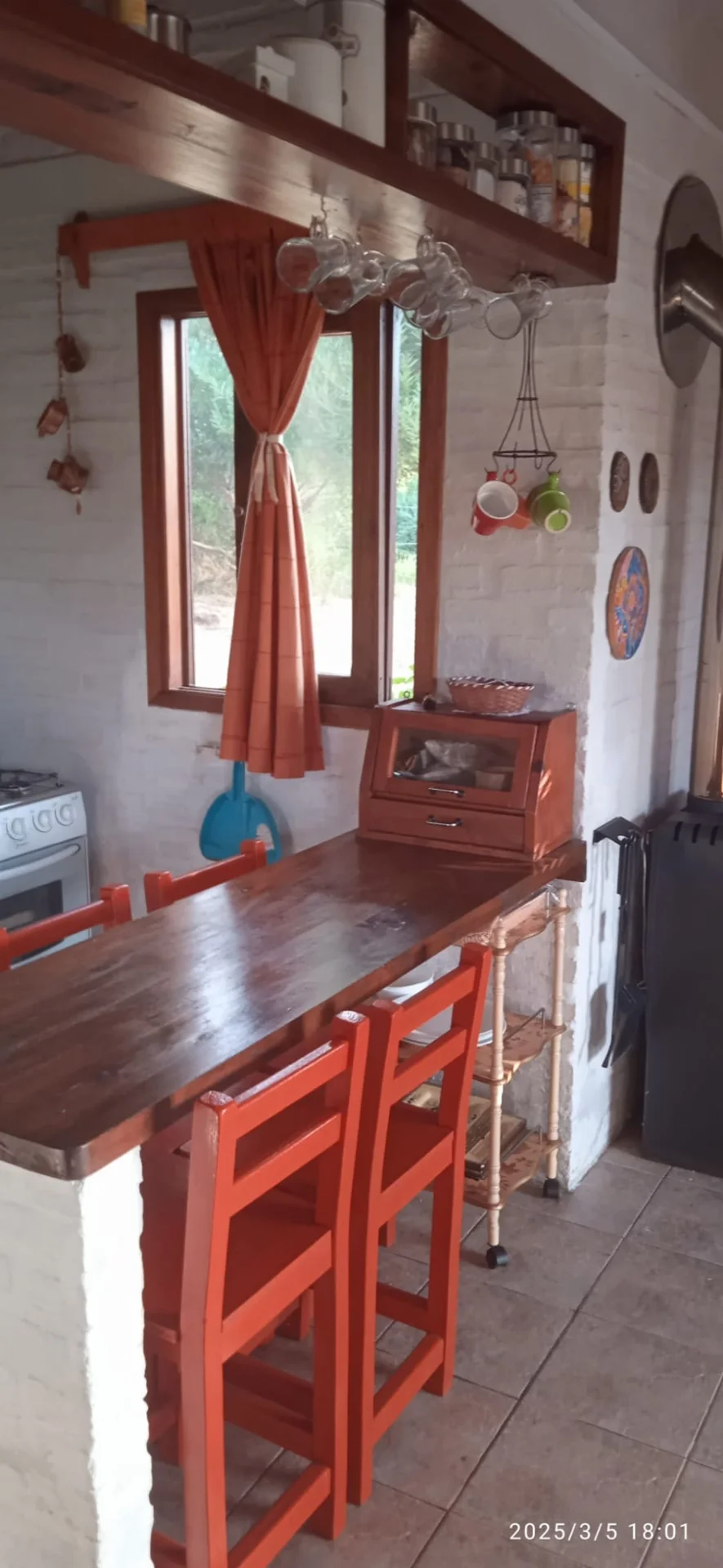 La casa posee unos 30 m2 edificados aproximadamente, es un monoambiente, el cual tiene su dormitorio conectado al living, sin paredes, una barra que oficia de comedor, estufa a leña de alto rendimiento, cocina y baño (se puede levantar un muro de Steel o Wood Flaming para separar el comedor del living si se desea más privacidad. Casa ideal para una pareja. Sobre el fondo posee un pequeño deposito de unos 10 m2 aproximadamente, para guardar todo tipo de herramientas y utensilios de la casa. También cuenta con parrillero y horno de barro, y un gran deck alrededor de toda la casa, él cual es semi techado y abierto, procurándose su uso para el parrillero y la cochera.