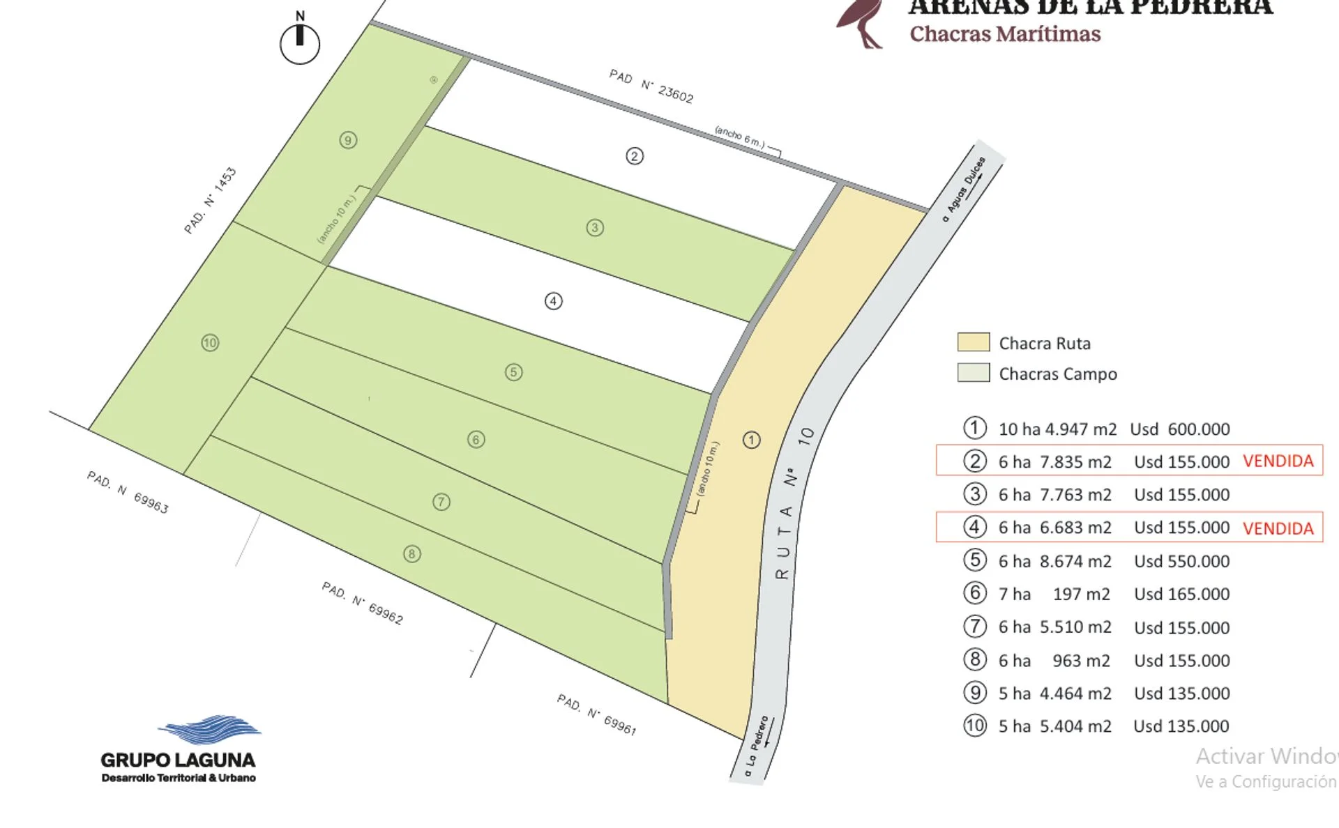 Son solamente 10 chacras que van desde las 5 hectáreas y media hasta las 7 hás. Algunas sobre la ruta 10 y las otras con fácil acceso
