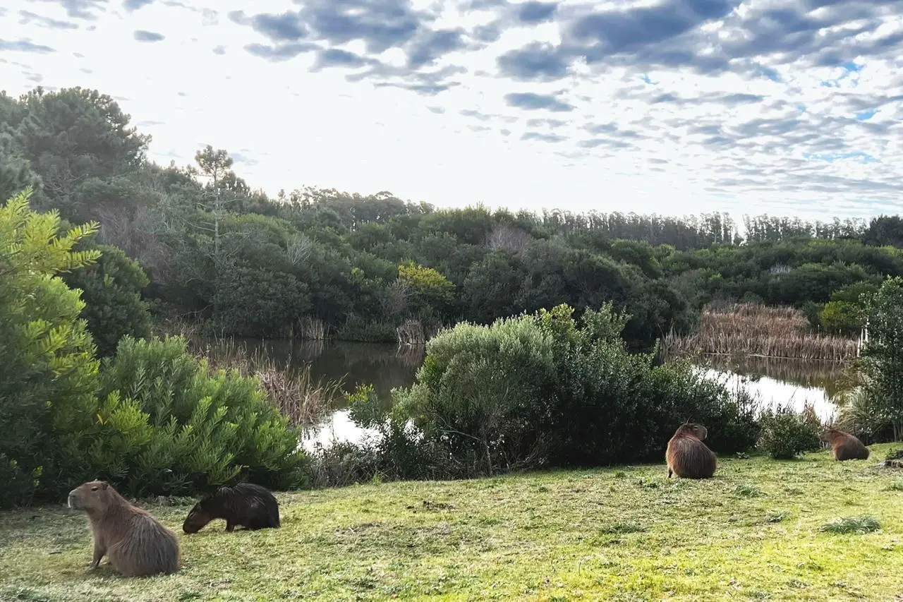El proyecto Tajamares fue diseñado respetando la topografía y los paisajes originales: lomadas suaves, espejos de agua, praderas, montes de eucaliptos y monte indígena con coronillas, espinillos y talas. Hoy se ha convertido en un verdadero refugio de biodiversidad, hogar de aves, carpinchos y una rica vegetación autóctona.