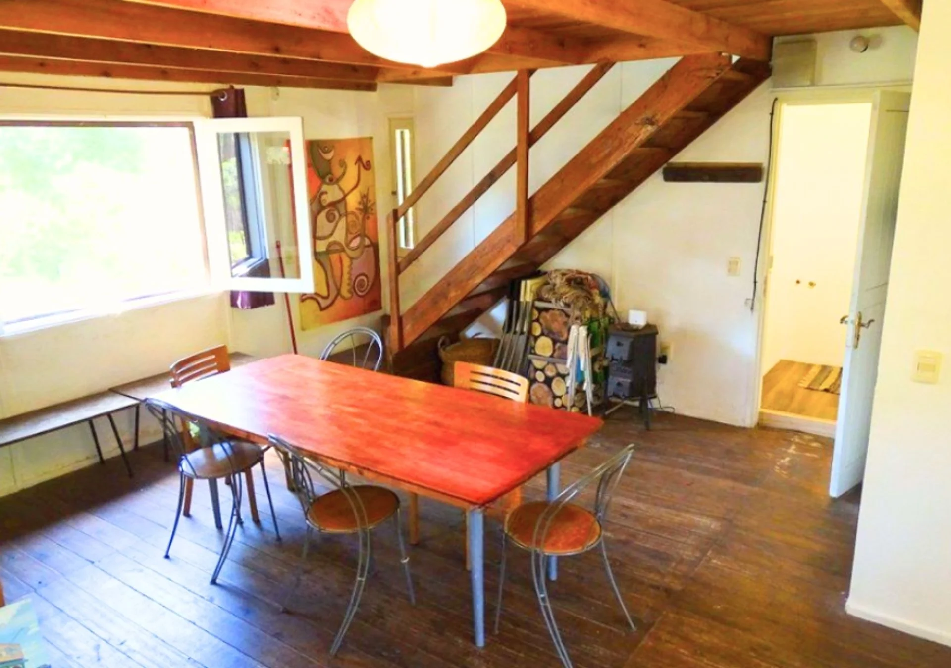 Propiedad desarrollada en dos plantas con un total de 83 m² construidos (65 m² interiores + 18 m² de deck), sobre un terreno de 768 m² con amplio jardín arbolado.