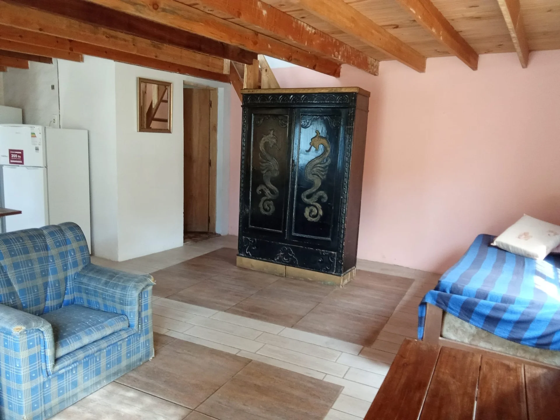 CABAÑA DE 2 PLANTAS, MUY CALIDA EN SU INTERIOR, PLANTA BAJA UN GRAN AMBIENTE CON COCINA INTEGRADA Y BAÑO, PISO SUPERIOR UN ENORME DORMITORIO CON AIRE ACONDICIONADO.