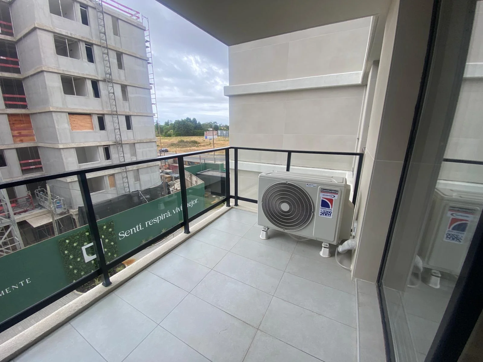 El apartamento se destaca por su calidad constructiva, con aberturas DVH (doble vidrio hermético) que mejoran el aislamiento térmico y acústico, y aire acondicionado instalado en todos los ambientes. También incluye cochera techada propia.