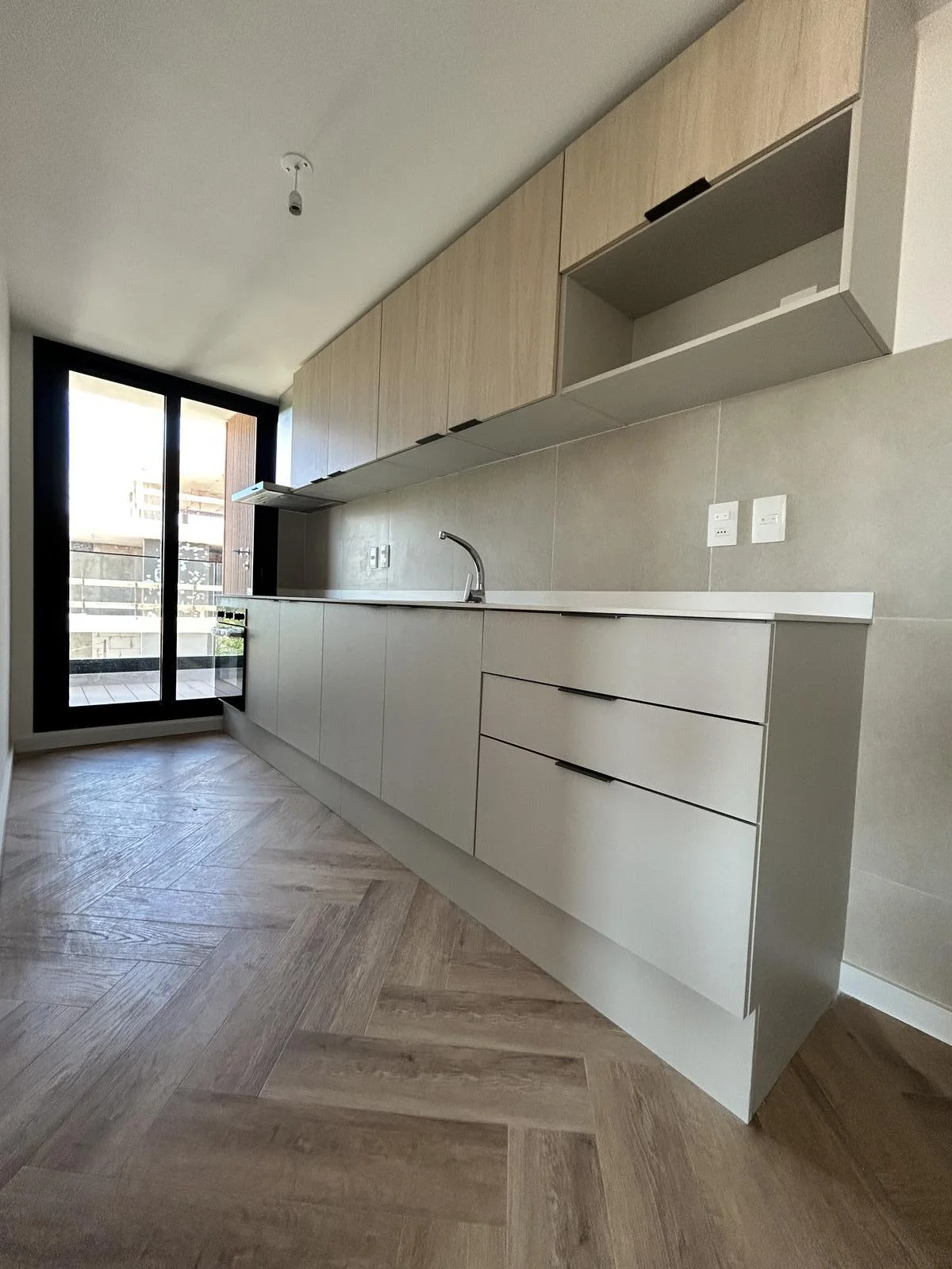 El apartamento en alquiler a estrenar cuenta con 2 dormitorios, living-comedor, terraza, cocina integrada, con mobiliario bajo mesada y aéreos. Equipado con horno, anafe y campana y baño equipado. Previsión para lavarropas y calefón. Incluye cochera.