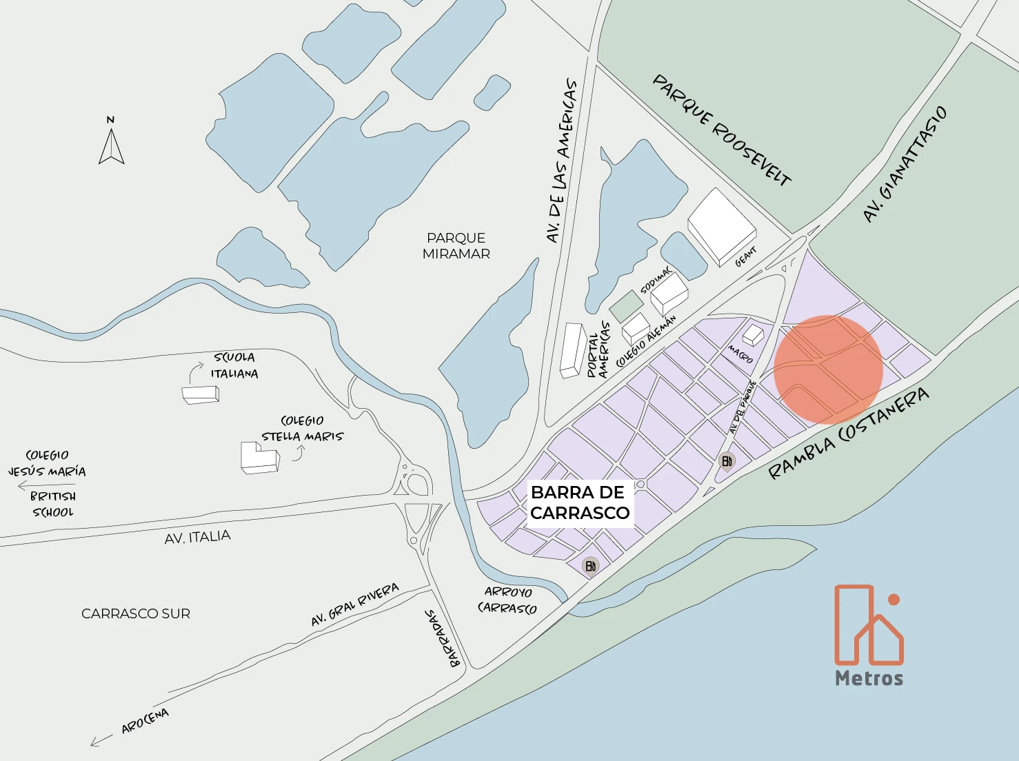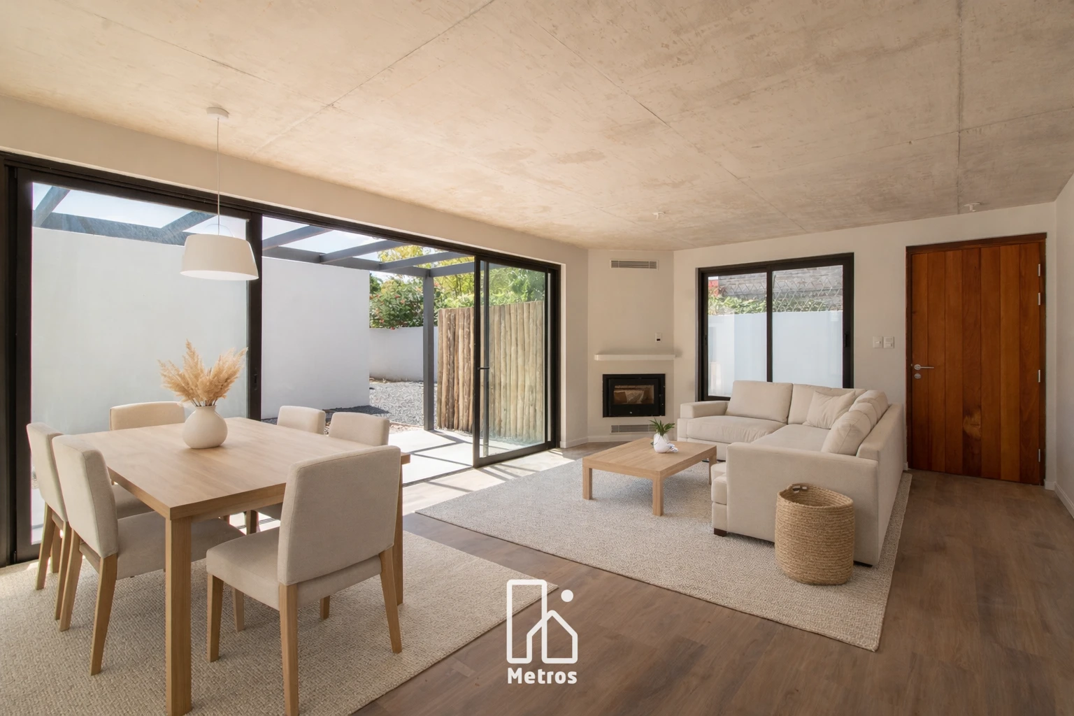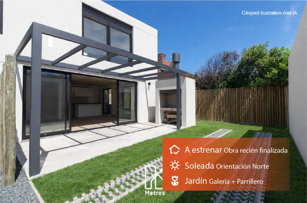 ¡Casa en alquiler a estrenar! Disponible en complejo de Barra de Carrasco. DESTACAMOS A estrenar obra recién finalizada • Excelente iluminación por su Orientación al Norte • a 1 cuadra de Rambla y en la zona mas Linda de Barra de Carrasco • Estufa alto rendimiento • Grandes ventanales • Espacios abiertos y unificados • Galería con parrillero • Gastos comunes bajísimos AMBIENTES Amplio living comedor • Cocina integrada con isla • 3 dormitorios • 2 baños completos • Jardín privado • Galería con parrillero • Cochera EL COMPLEJO La Casa se ubica en un complejo cerrado de 3 casas, con espacios exteriores de jardín de uso exclusivo y cocheras individuales, en una privilegiada ubicación, en Barra de Carrasco. El complejo ofrece la privacidad y comodidad necesaria, con los servicios más convenientes: a sólo una cuadra de la Rambla Costanera, cercano al centro comercial Geant del Parque Roosvelt y a cinco minutos del centro de Carrasco o del Aeropuerto. LA CASA La casa cuenta con 2 plantas de 108 m2 interiores en 130 m2 de terreno. En Planta Baja se encuentra un amplio living comedor con estufa de alto rendimiento. Es el ambiente más iluminado gracias a su triple orientación y gran ventanal con orientación norte integrado a galería con parrillero. ¡La mejor orientación que ofrece sol todo el año! La Galería con parrillero tiene una excelente vista al amplio jardín privado de la casa, el mejor plan para disfrutar en familia! La cocina, integrada al área social, se resuelve con una isla central que organiza y potencia el espacio. Cuenta con mobiliario bajo y sobre mesada, ofreciendo un amplio lugar de guardado. La isla, además de sumar almacenamiento, incorpora espacio para banquetas, convirtiéndose en un punto de encuentro funcional y versátil. Además, cuenta con salida al jardín. En esta planta también se encuentra un baño social. En planta alta se encuentran los 3 dormitorios, el principal de amplias dimensiones. Todos los dormitorios cuentan con amplios placares. Baño completo, con excelentes terminaciones. La Calefacción es por losa radiante eléctrica independiente por ambiente. Previsión de aire acondicionado en living y todos los dormitorios. Aberturas en aluminio con DVH, con cortinas de enrollar en dormitorios. Los pisos vinílicos símil madera. Cuenta con cochera. PRECIOS Gastos comunes: $300 (luz de entrada y portón automático) Comisión inmobiliaria: 1 mes de alquiler + iva ¡Te deseamos suerte en tu búsqueda, y estamos para ayudarte tanto con esta propiedad o también para ayudarte buscando otras opciones en todo el mercado! No dudes en contactarnos. Inmobiliaria Metros Consulta nuestra web y redes sociales para encontrar otras oportunidades