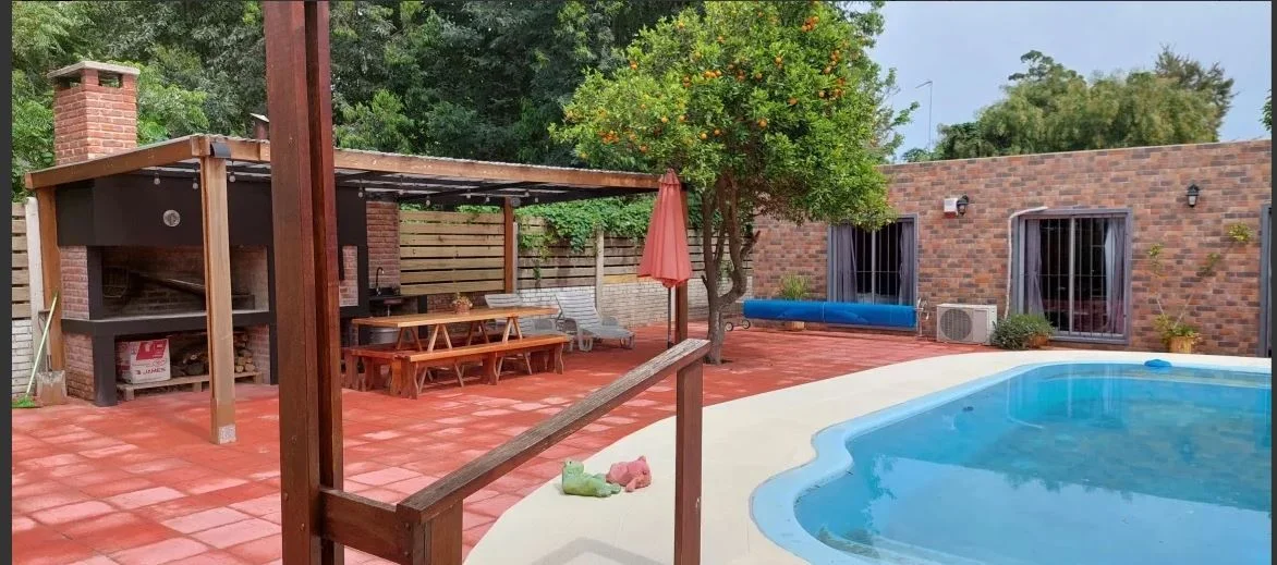 Se alquila muy linda y cómoda casa de 2 dormitorios en Las Toscas, Canelones (a 47 kms de Montevideo) para 6 personas con piscina climatizada.