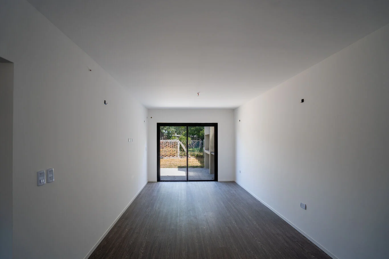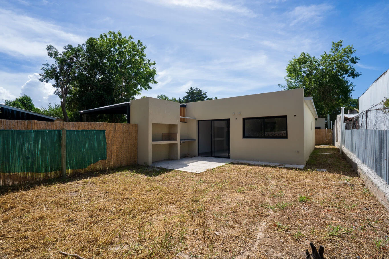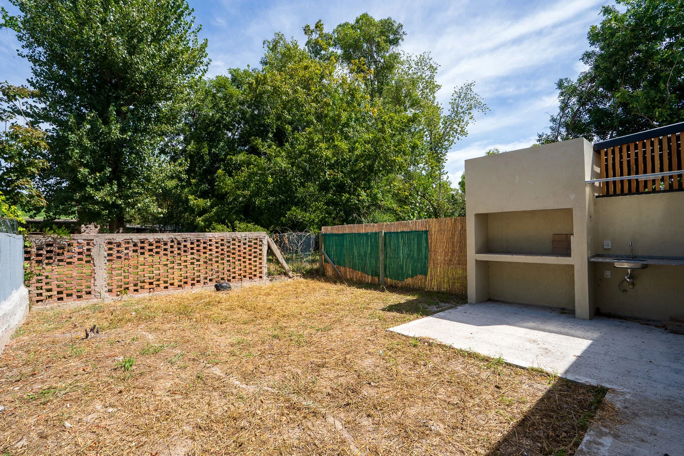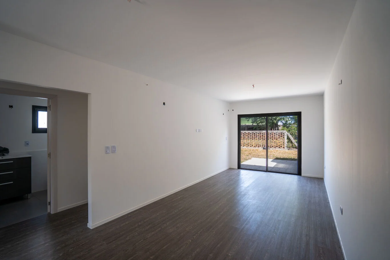 2 dormitorios Baño completo Living comedor Cocina integrada por barra Jardín con parrillero