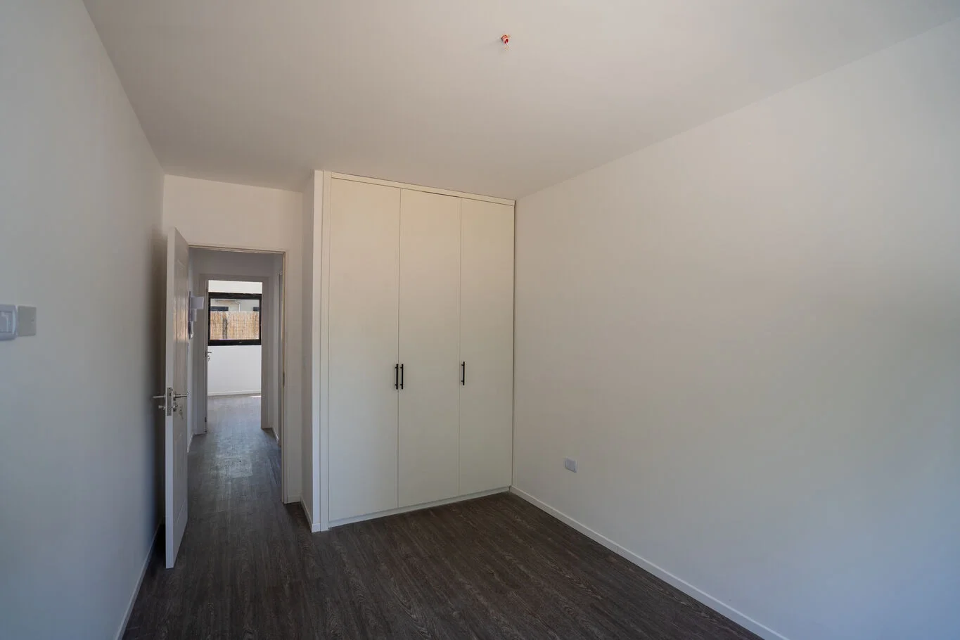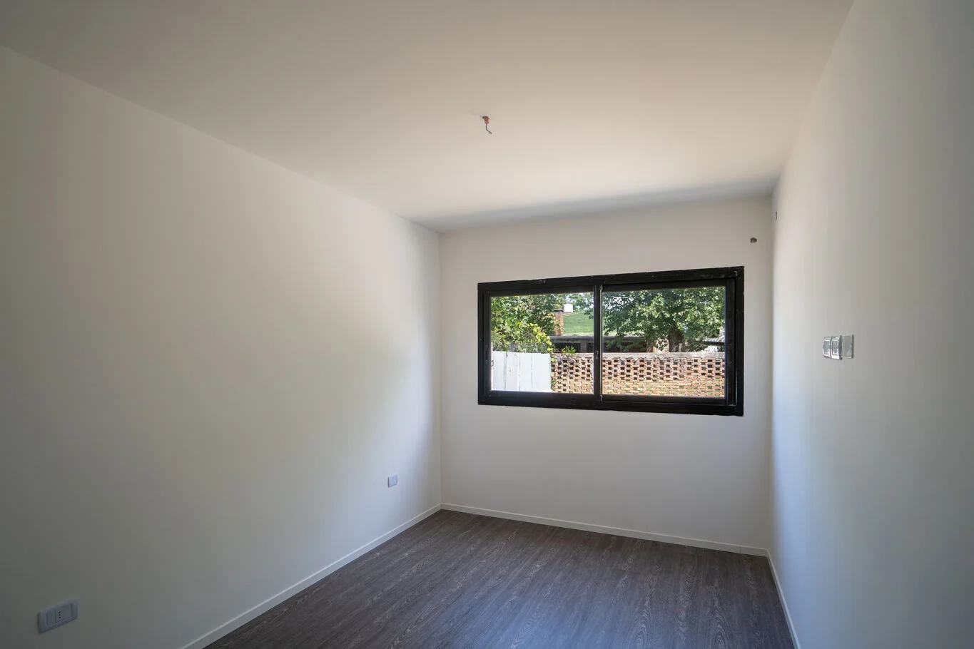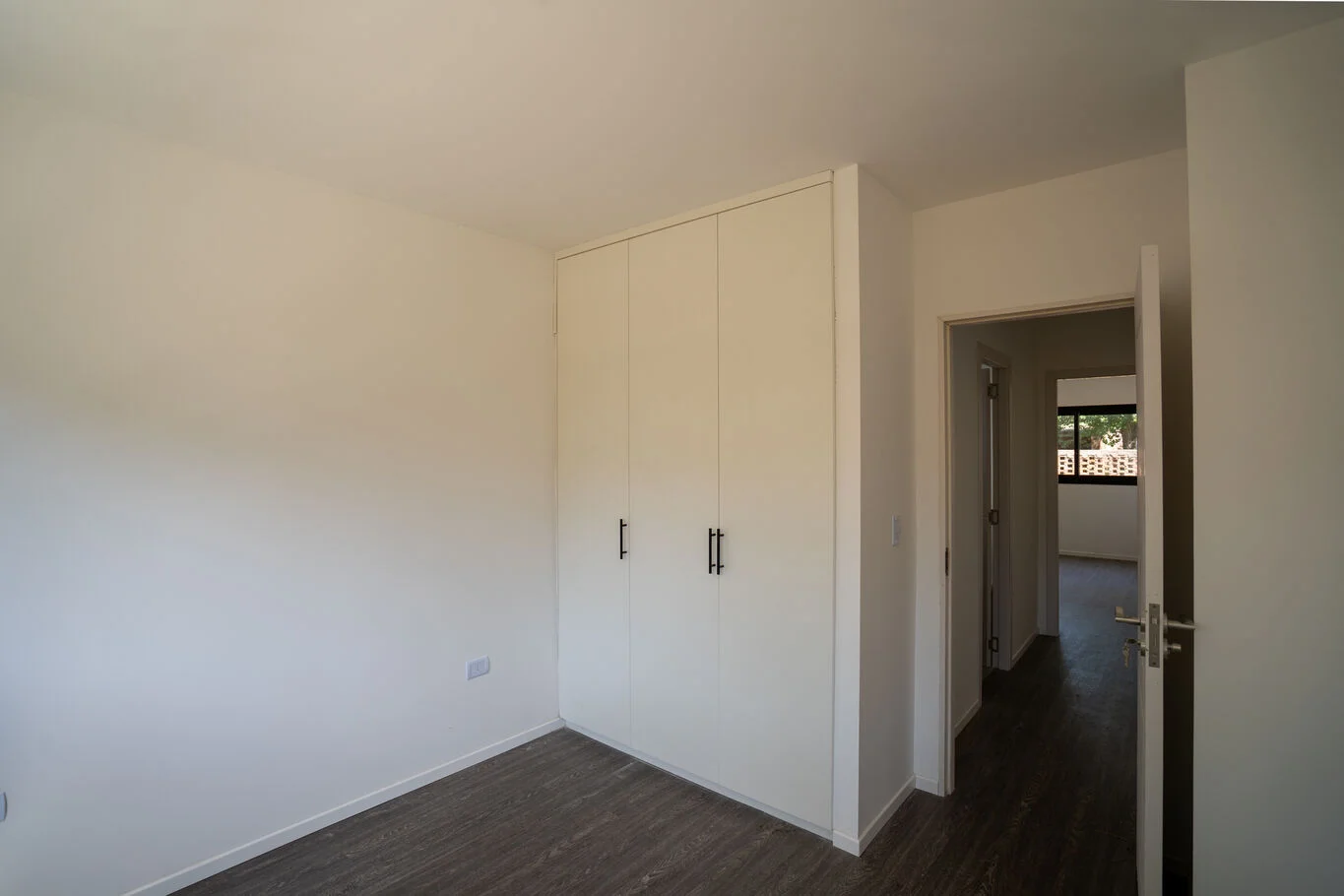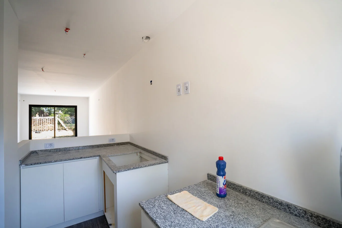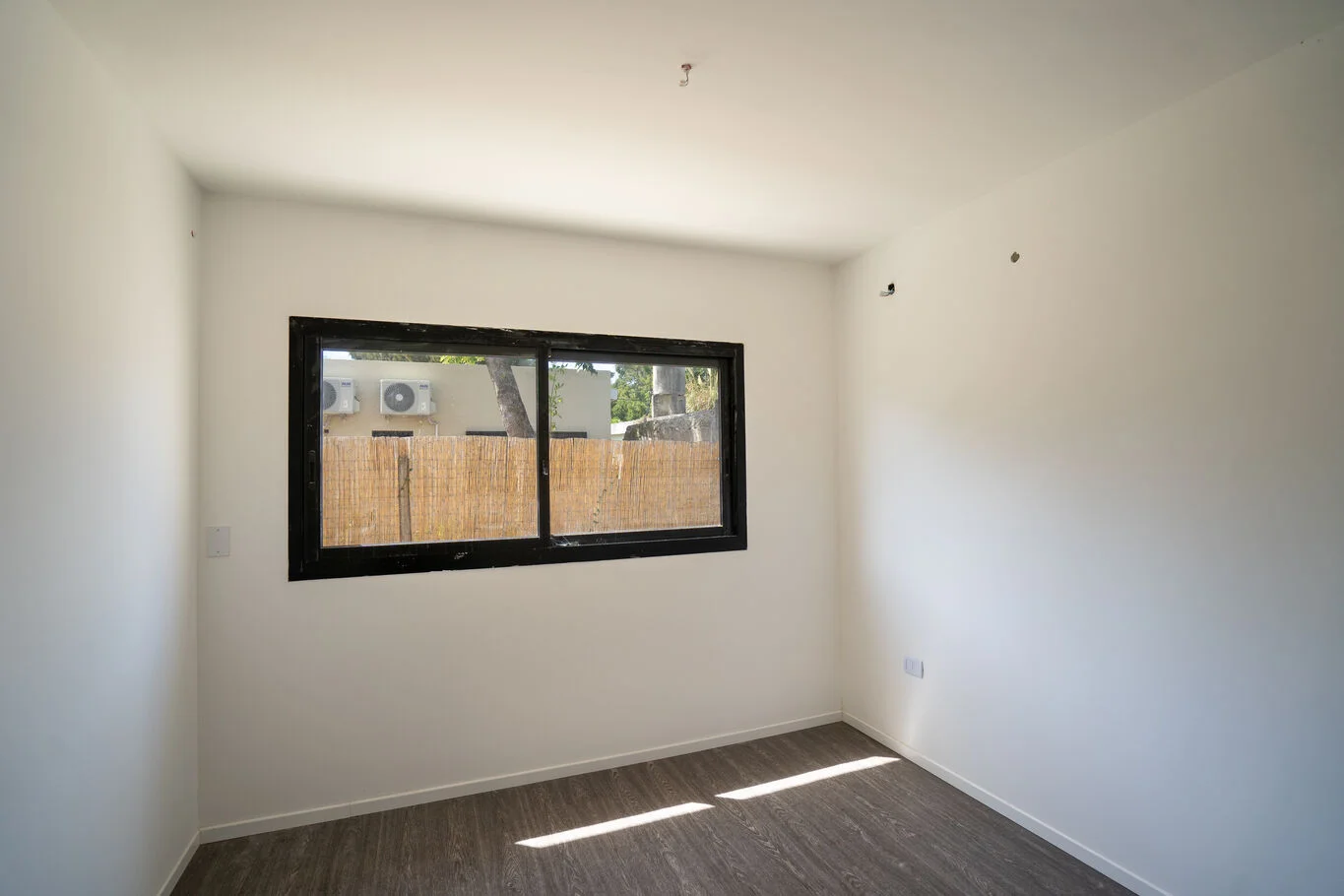 2 dormitorios Baño completo Living comedor Cocina integrada por barra Jardín con parrillero