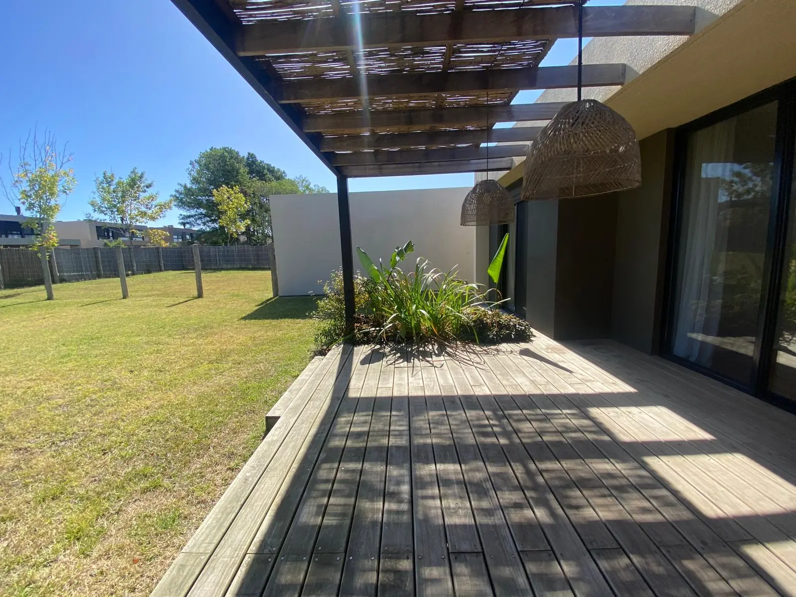 La casa tiene cortinas de lino en todos su ambientes y aire acondicionado.