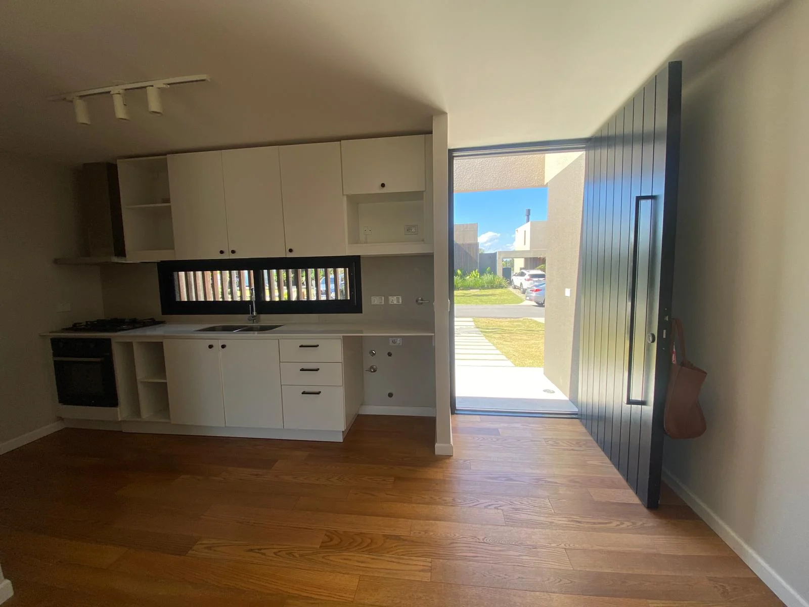 Tipología 6, divina casa desarrollada toda en una planta. Al ingresar se encuentra la cocina con mesada doble bacha placares aéreos y bajo mesada.