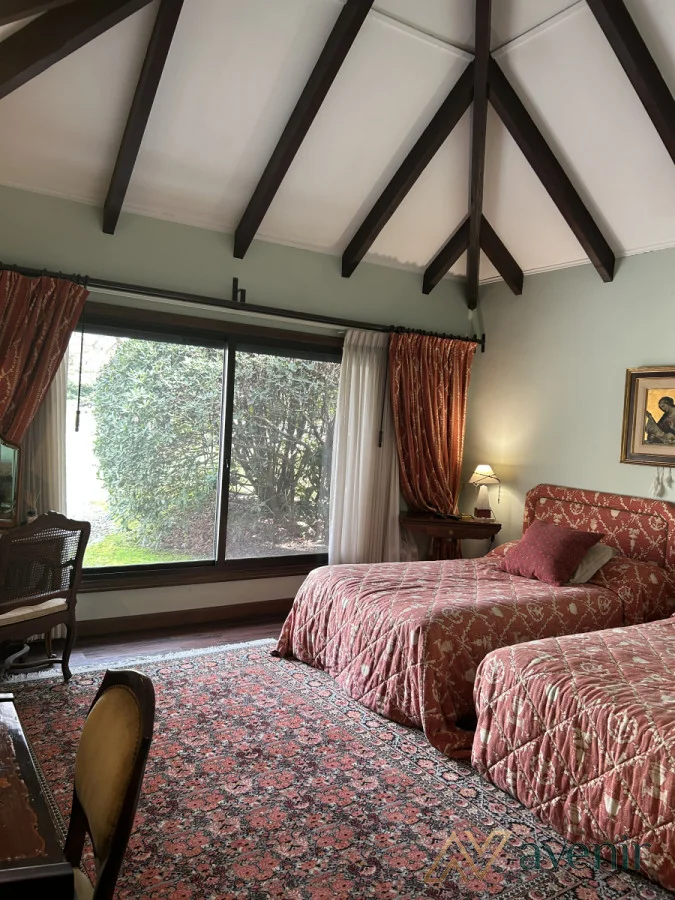 Descubre esta casa funcional y sofisticada, ubicada en un exclusivo barrio privado, ideal para diplomáticos por sus amplios espacios para recepciones, techos altos y buen gusto internacional. Construida por el prestigioso Arq. Strauch, esta casa se desarrolla en una planta y es de sólida construcción tradicional, cuenta con estufa tradicional en su estar diario, losa radiante y aire acondicionado central.