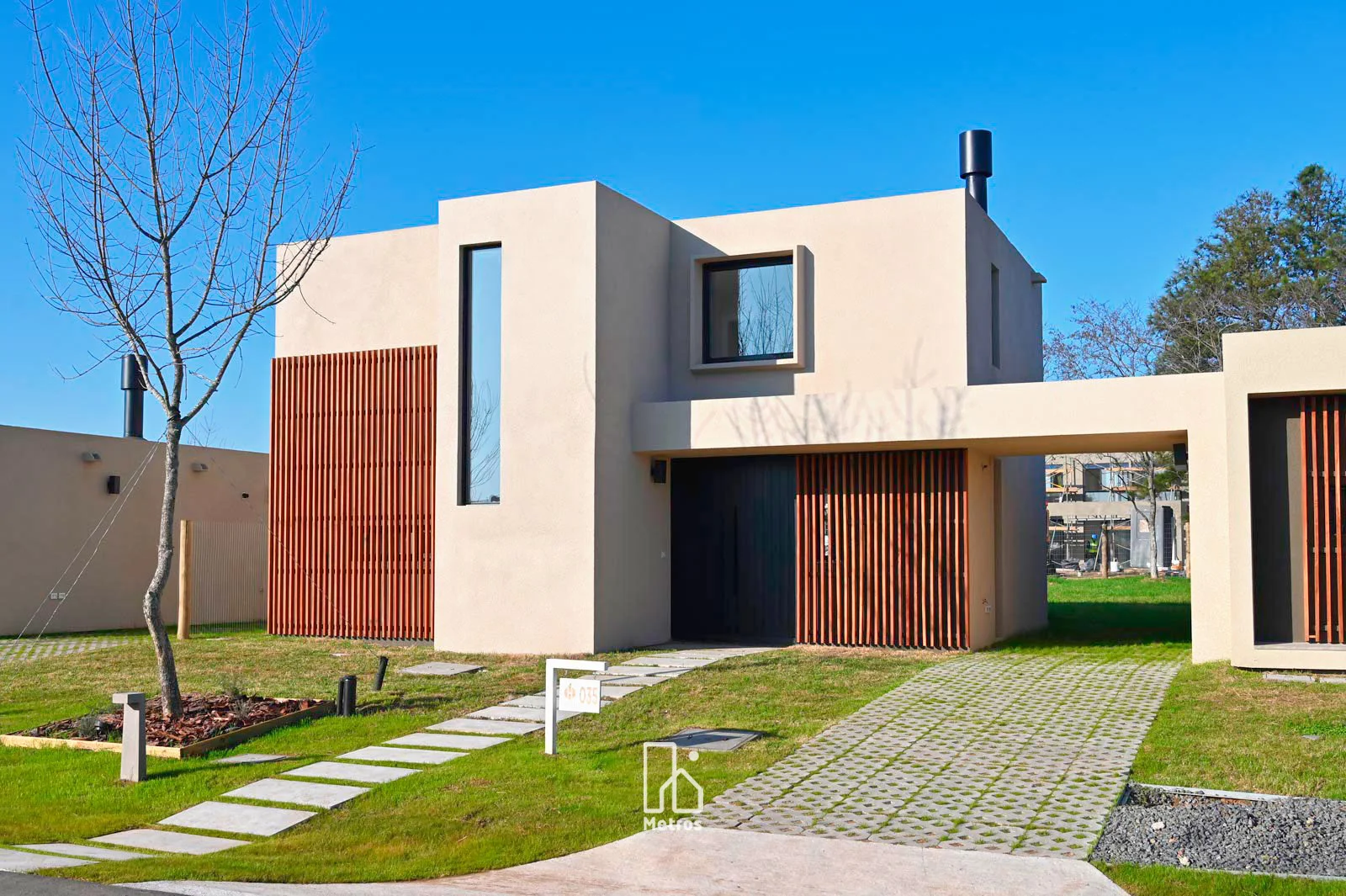 En el exterior también se encuentra un área de estacionamiento para dos vehículos en green block y conexión para carga de autos eléctricos. Cerco perimetral en laterales y fondo, y luminarias en paredes.