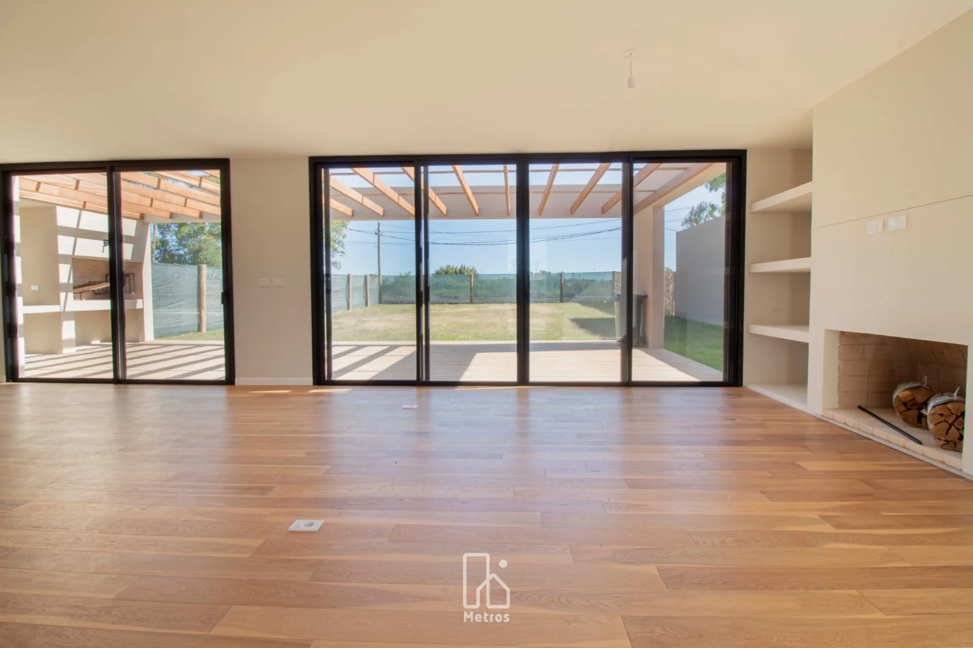 Amplio living comedor Apaisado con Estufa a leña • Gran jardín + Deck con parrillero • Cocina + comedor integrado al living • 3 dormitorios • 3 baños (1 toilette)