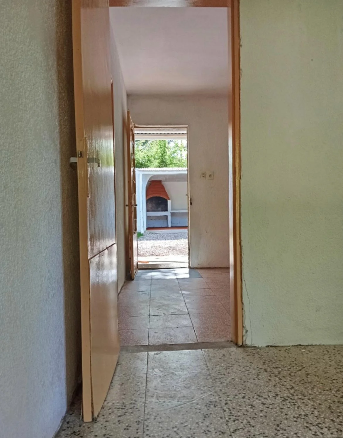 93 mª construidos en terreno de 615 m2 Un dormitorio. Salón con estufa, garage comunicado que puede usarse como otro dormitorio. Alero al frente y amplio alero al fondo.