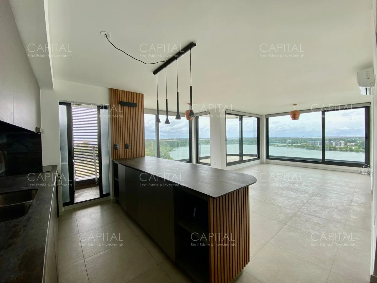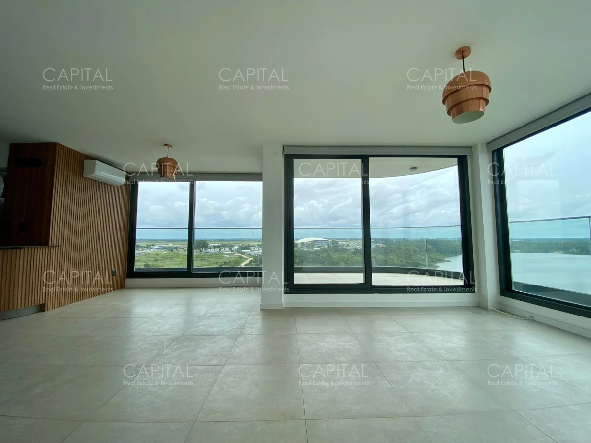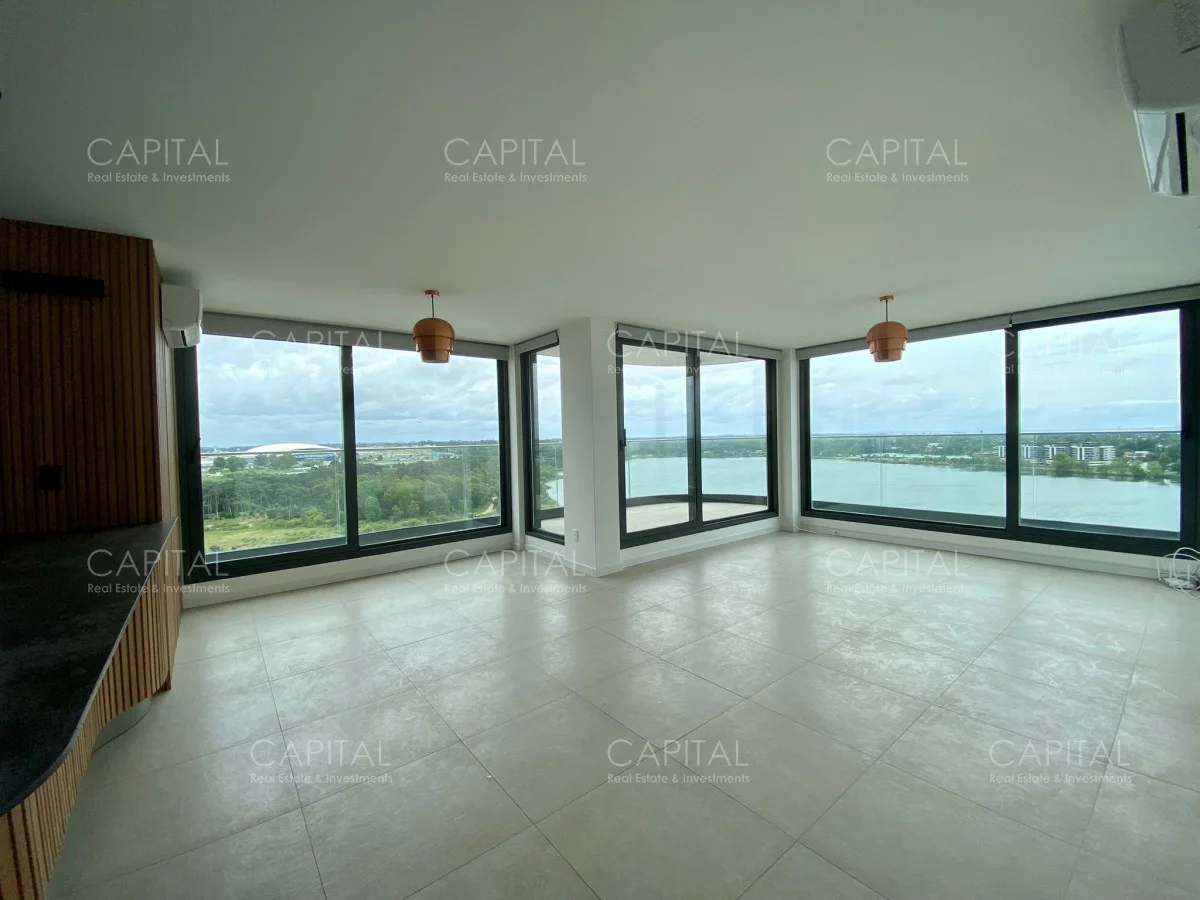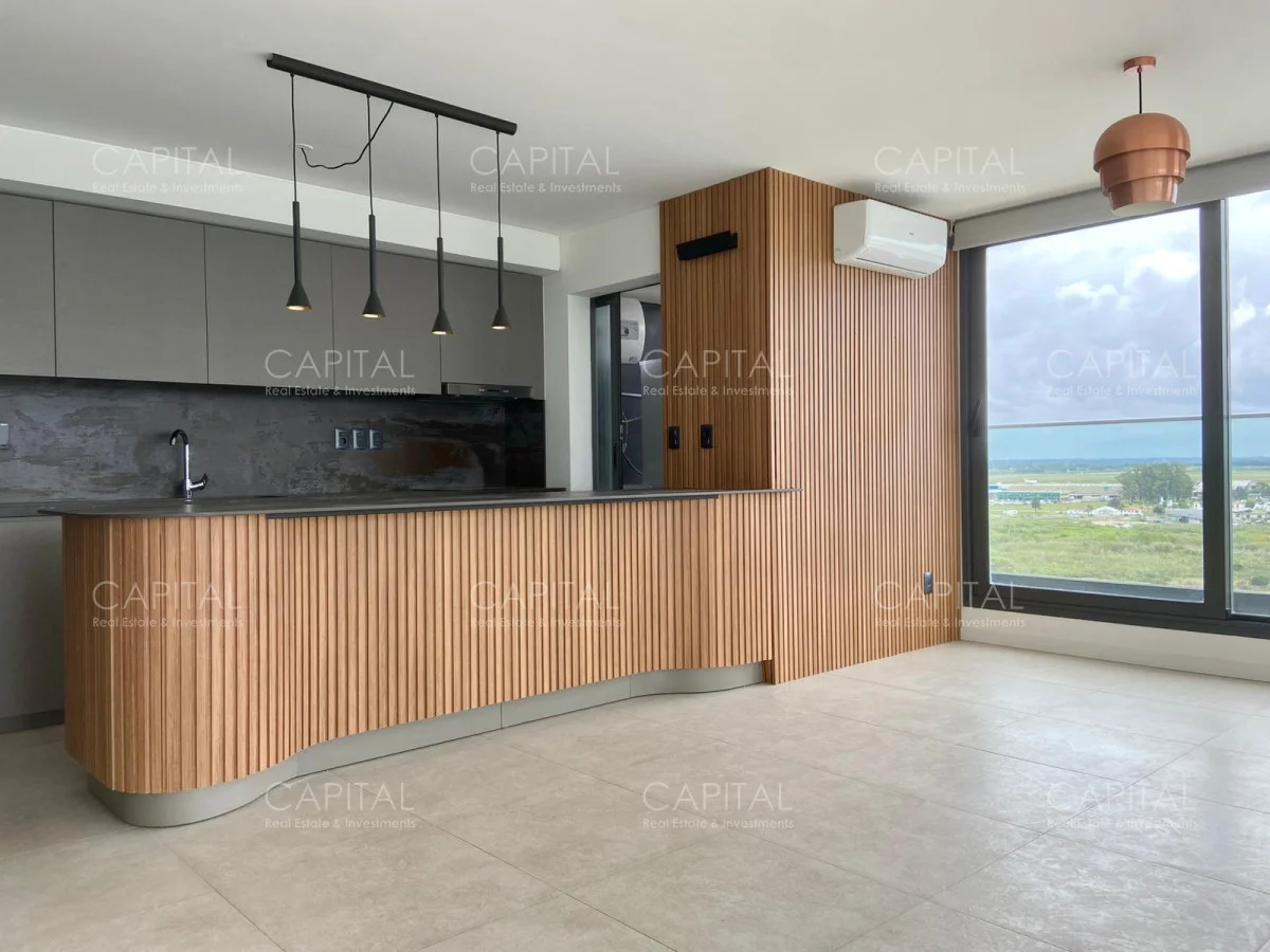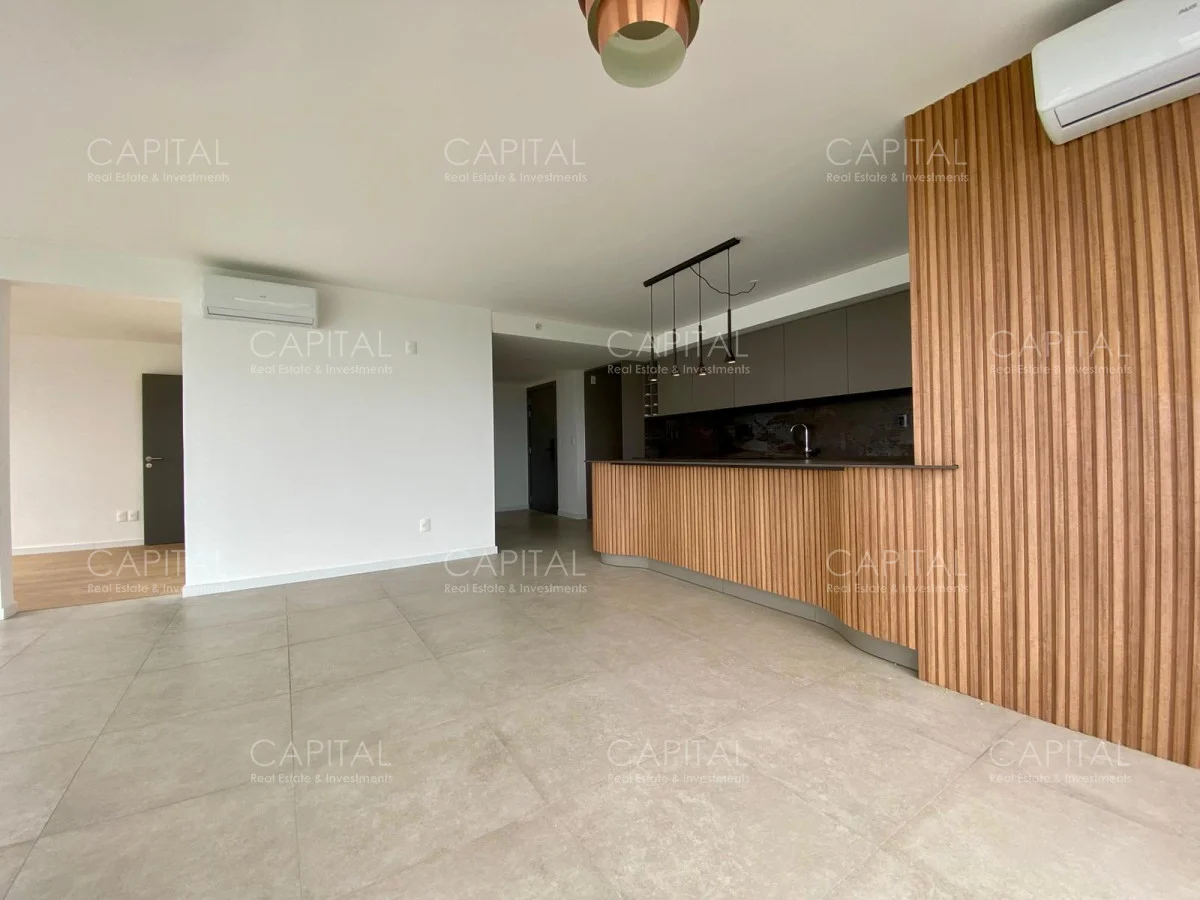 Amplio living comedor con cocina integrada con barra, terraza lavadero.
