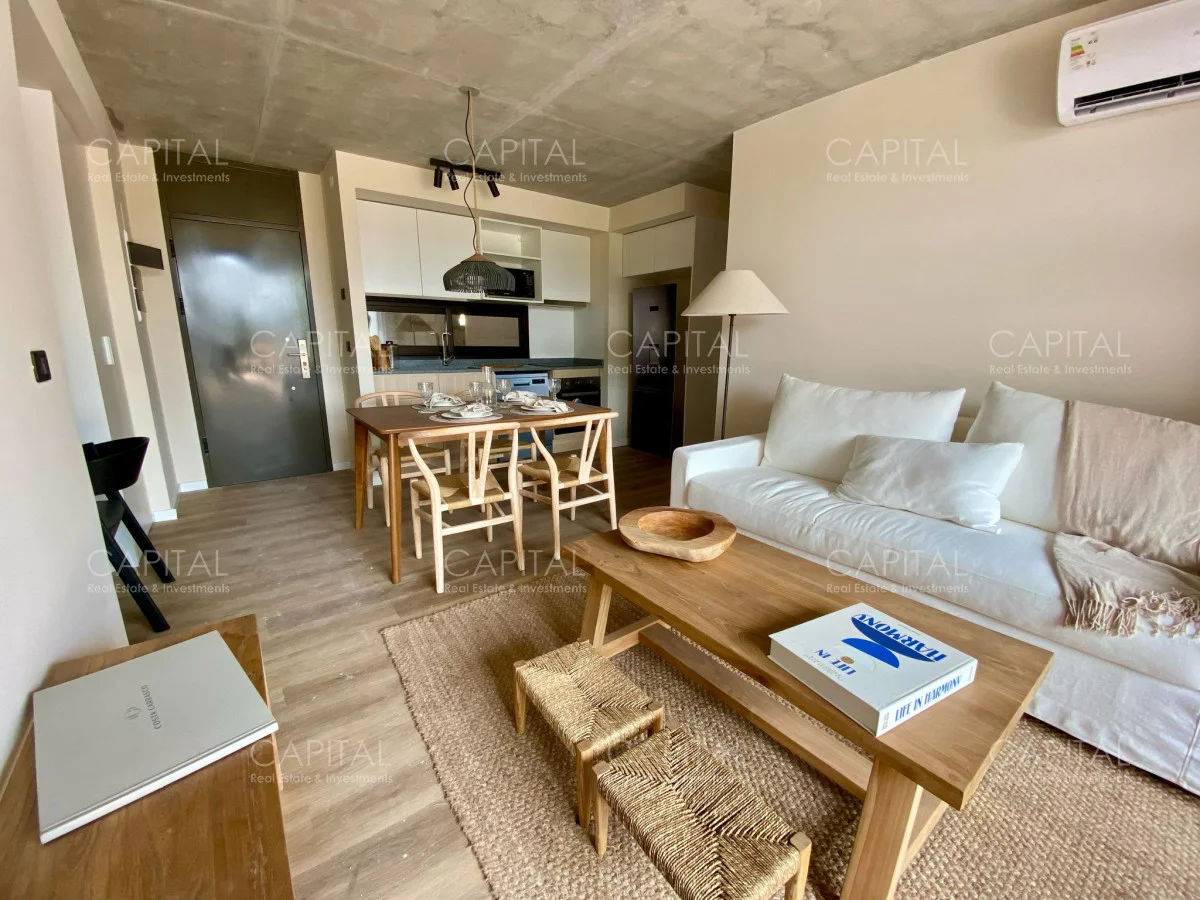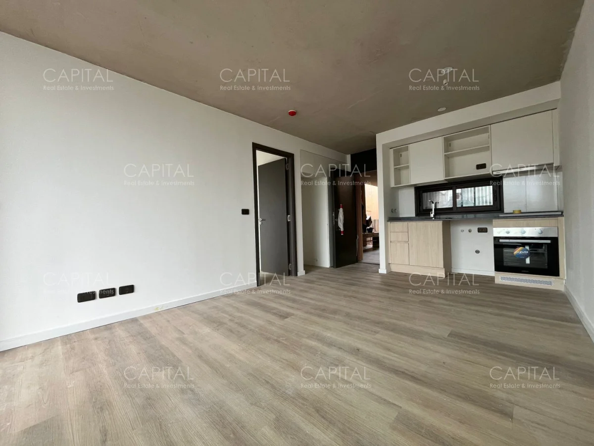 Departamento de living comedor amplio con cocina integrada, cuenta con un dormitorio y un baño, edificio de buen diseño y bajos gastos comunes.