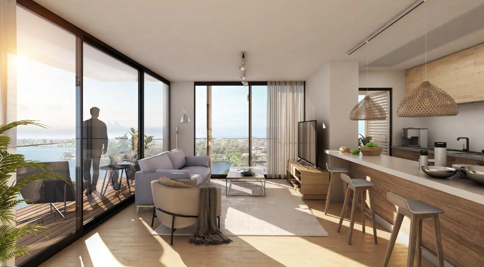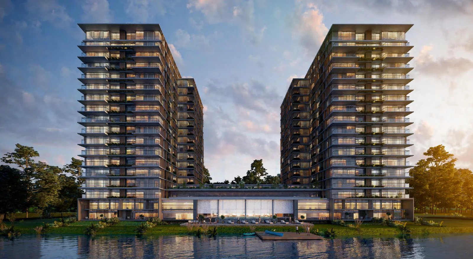 El conjunto contará con 580 unidades residenciales distribuidas en dos etapas, organizadas en un basamento con accesos, estacionamientos, viviendas y amenities, del que emergen cuatro torres con vistas abiertas al entorno natural.