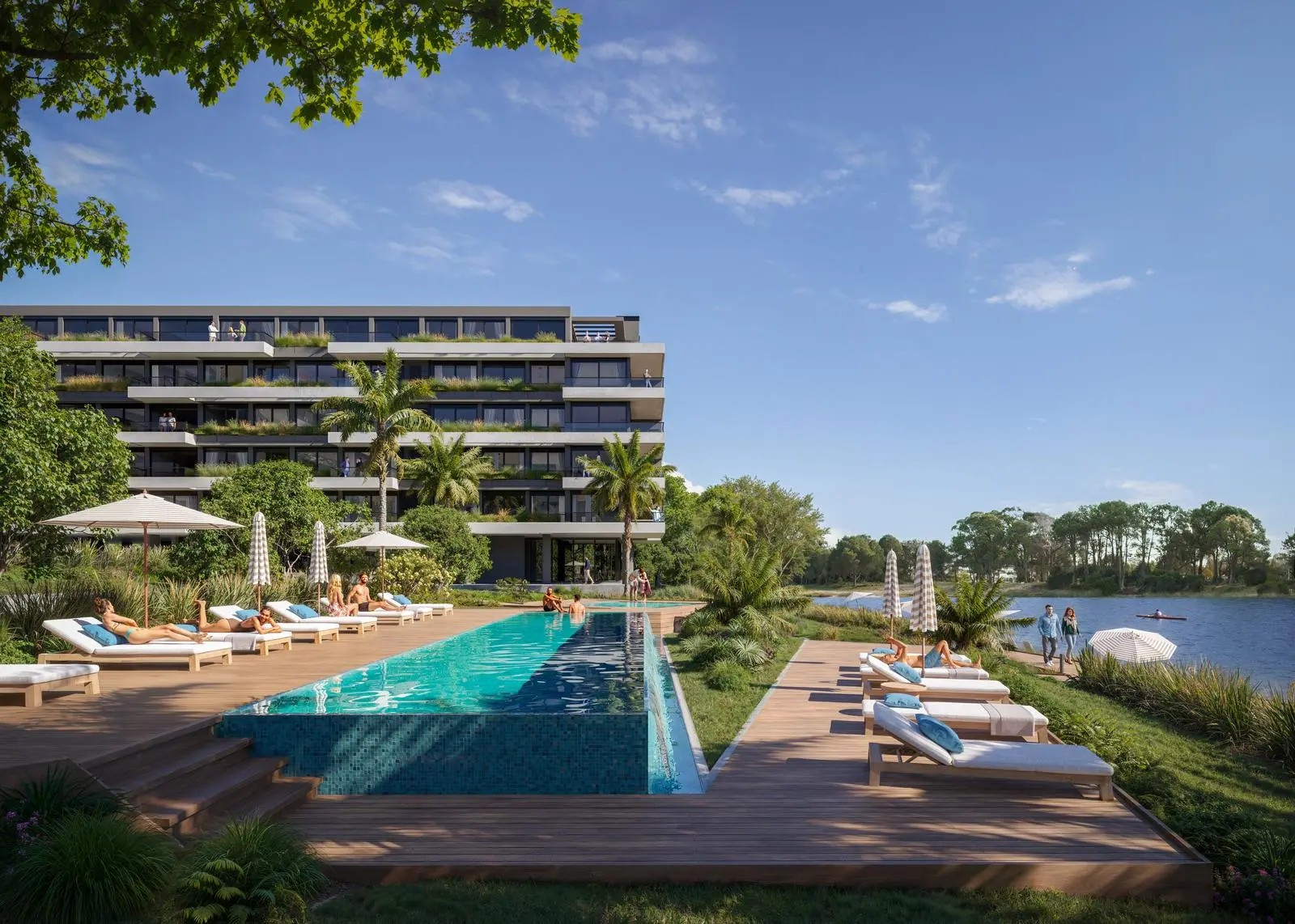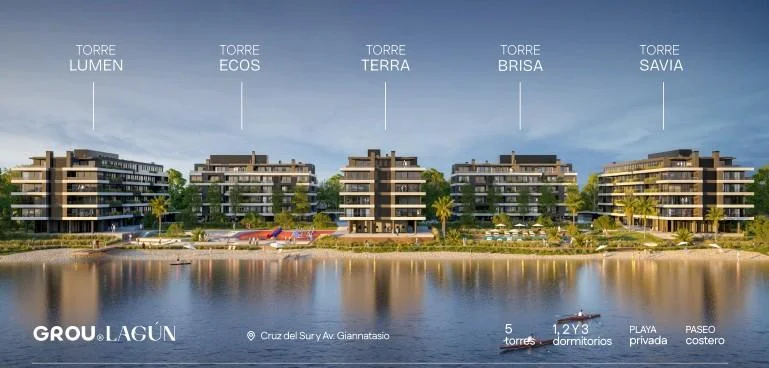 Lagún es un desarrollo residencial de 5 torres emplazadas a orillas del lago, en armonía con la vegetación autóctona del Distrito Carrasco Prat.