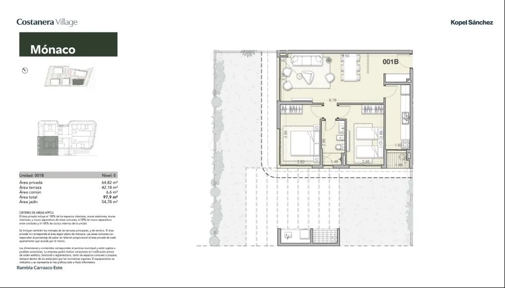 Apartamento en alquiler en Barra de Carrasco, dentro del complejo Costanera Village, situado sobre la Rambla Costanera. Esta unidad a estrenar cuenta con orientación este y dispone de un diseño funcional, conformado por living-comedor y terraza. La cocina está integrada y equipada con horno, anafe, campana, mobiliario bajo mesada y aéreos.