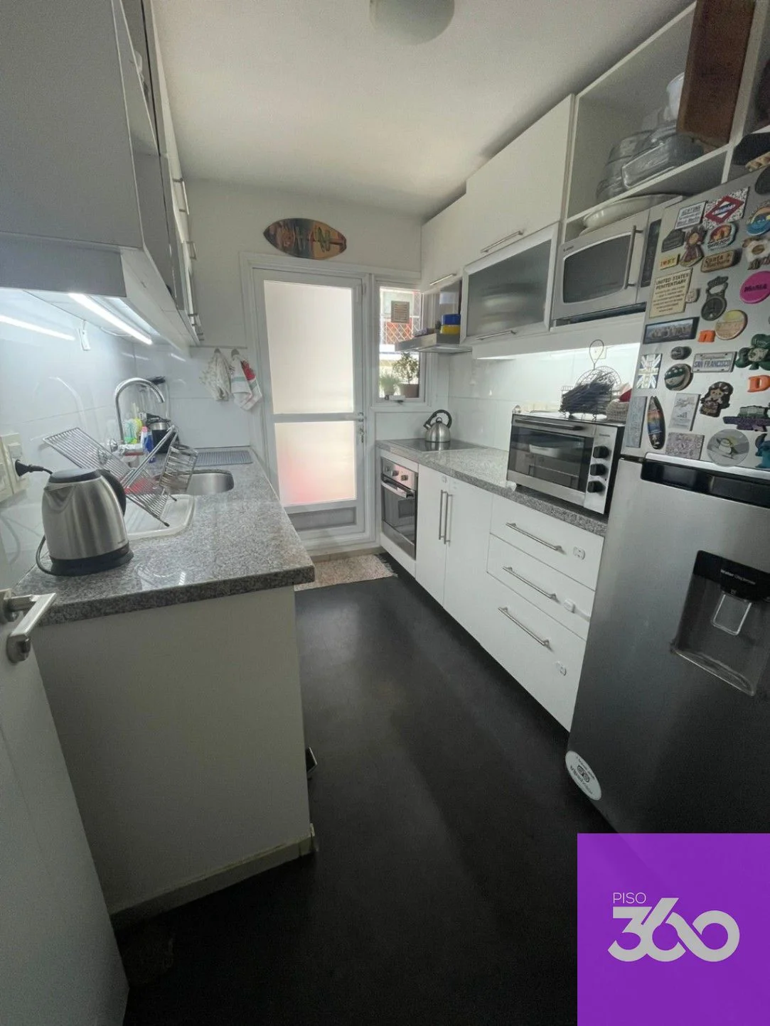 La cocina, perfectamente definida, está equipada con doble mesada, horno y anafe empotrados, además de una campana extractora y acceso a una terraza secundaria. Este apartamento dispone de dos cómodos dormitorios, ambos con salida a la terraza secundaria, y dos baños, siendo el principal en suite. También cuenta con un baño social, garantizando comodidad para residentes e invitados. El garaje tiene capacidad para dos autos grandes, lo que añade un valor significativo a esta propiedad.