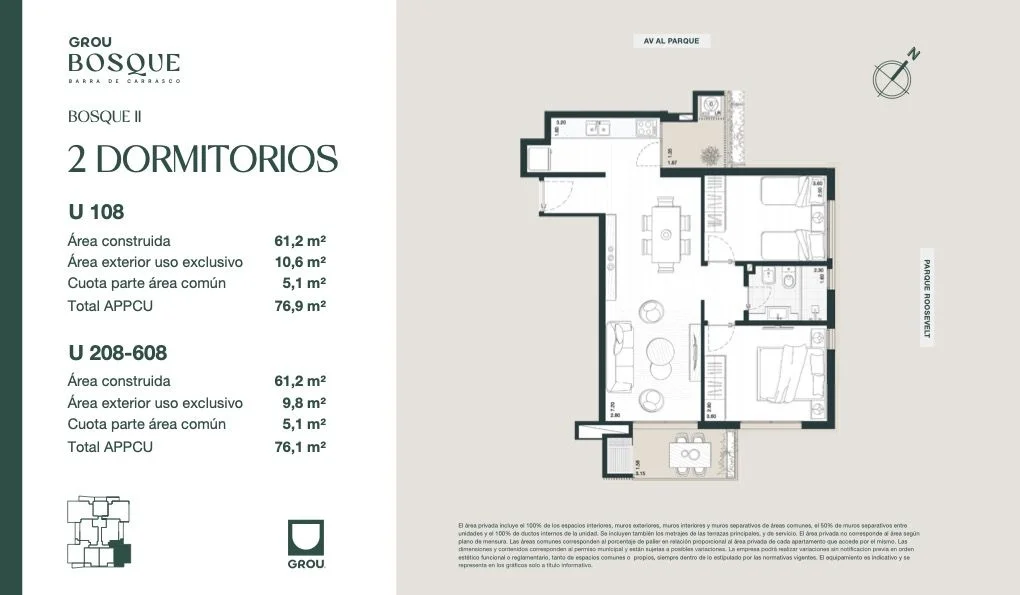 Apartamento en construcción de 2 dormitorios en Grou Bosque II, Barra de Carrasco cerca de todos los servicios!