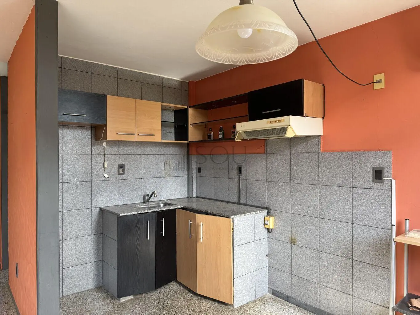Cocina reciclada con placares aéreos y bajo mesada.