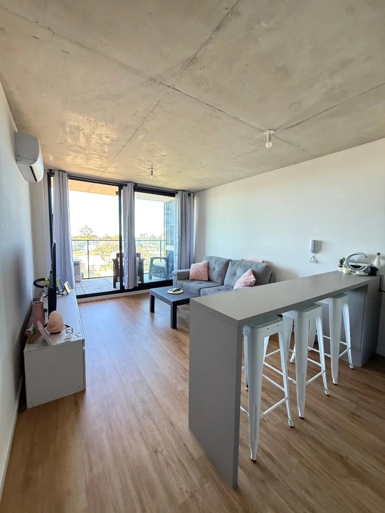 Ubicado en un cuarto piso con vistas despejadas, este precioso apartamento a estrenar combina confort, diseño y una excelente ubicación sobre Avenida Artigas, a pasos del Shopping Costa Urbana. Cuenta con balcón de uso exclusivo con parrillero propio, ideal para disfrutar al aire libre. El living-comedor es luminoso, con piso de parquet y aire acondicionado. La cocina está integrada, con barra desayunadora, campana, muebles aéreos y bajo mesada. El dormitorio es amplio, con grandes ventanales y también con aire acondicionado. Baño completo con conexión para lavarropas. El edificio, estrenado en 2025, ofrece piscina abierta, laundry, espacio para guardar bicicletas y cochera fija incluida. Ideal para quienes buscan comodidad, estilo y una ubicación estratégica en la zona de mayor crecimiento de Ciudad de la Costa. Lagomar Sur – Avenida Artigas, próximo al Shopping de la Costa. Honorarios inmobiliarios: 3% + IVA sobre el valor de venta. Los datos de medidas, superficies, gastos e impuestos fueron aportados por el propietario ,se consideran estimativos, sujetos a verificación. La inmobiliaria actúa solo como intermediaria comercial, sin validar títulos ni estados legales o administrativos, lo cual corresponde al escribano de confianza del interesado. El asesor asociado F PIRIZ trabaja en forma independiente, sin que la oficina asuma responsabilidad por actos individuales.
