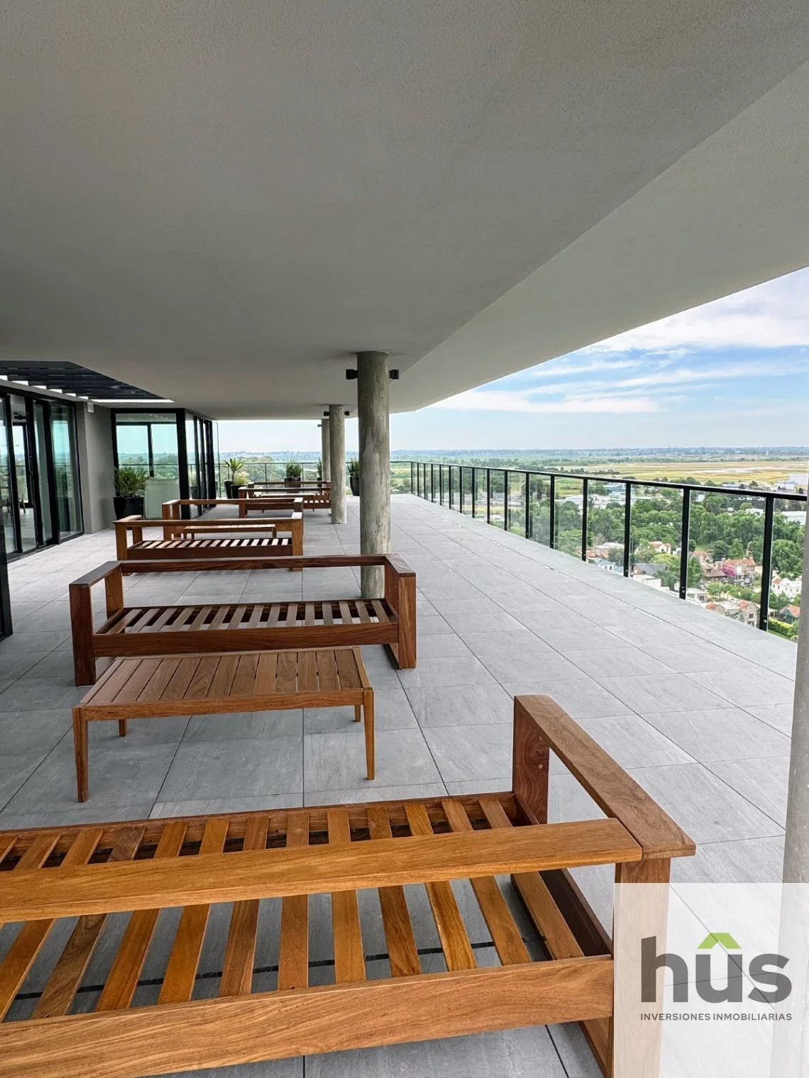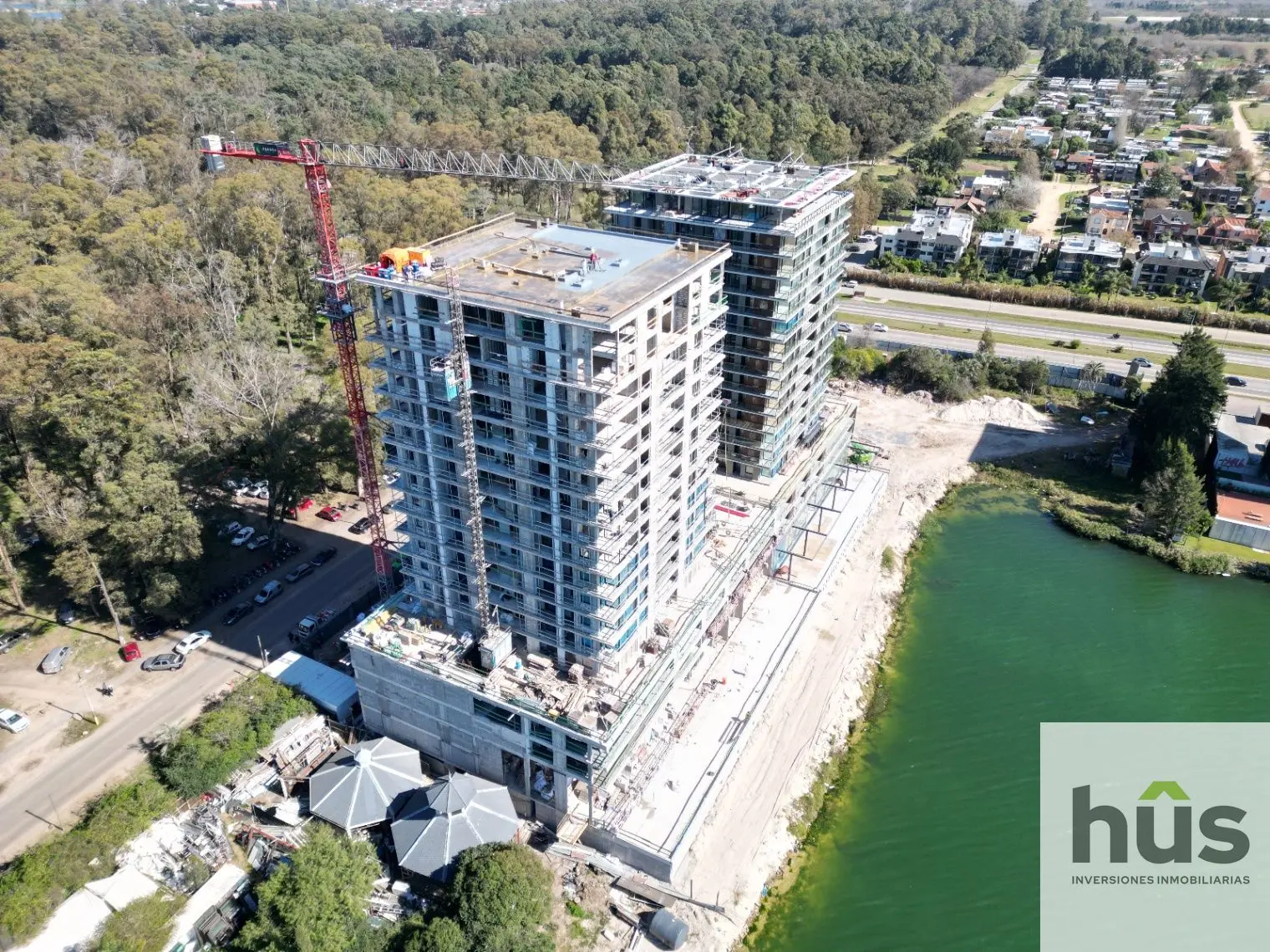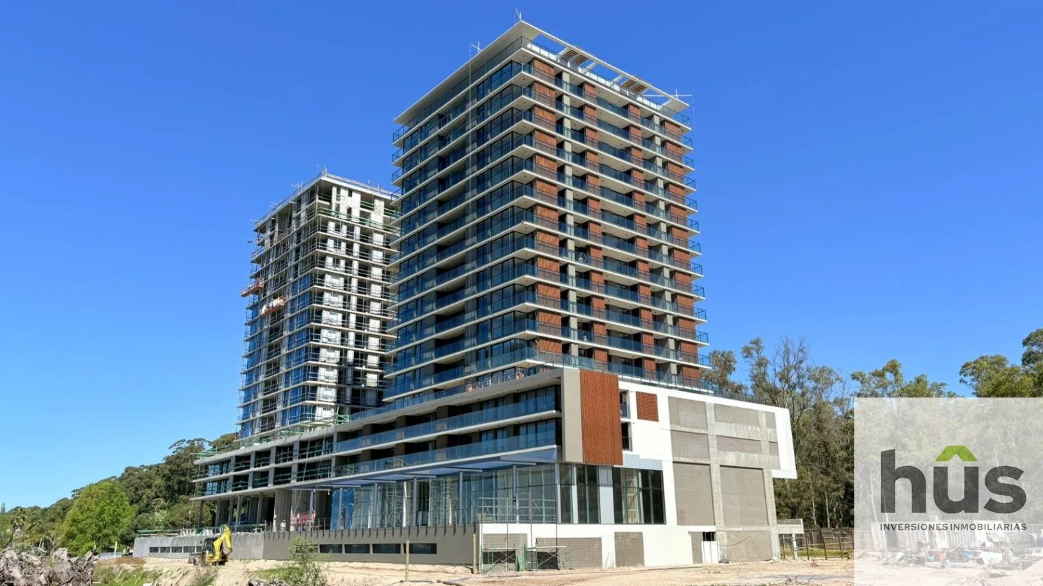Apartamento de 2 dormitorios esquinero con vista despejada a Parque Roosvelt. Hall de entrada, living-comedor con cocina integrada y terraza. Dos dormitorios y un baño. Garage para 1 auto. Edificio residencial y comercial de categoría, que se ubica en un entorno natural exclusivo, con frentes al paisaje de Lago y Parque. Amenities: Barbacoa con parrillero en ultimo piso, gimnasio, piscina.