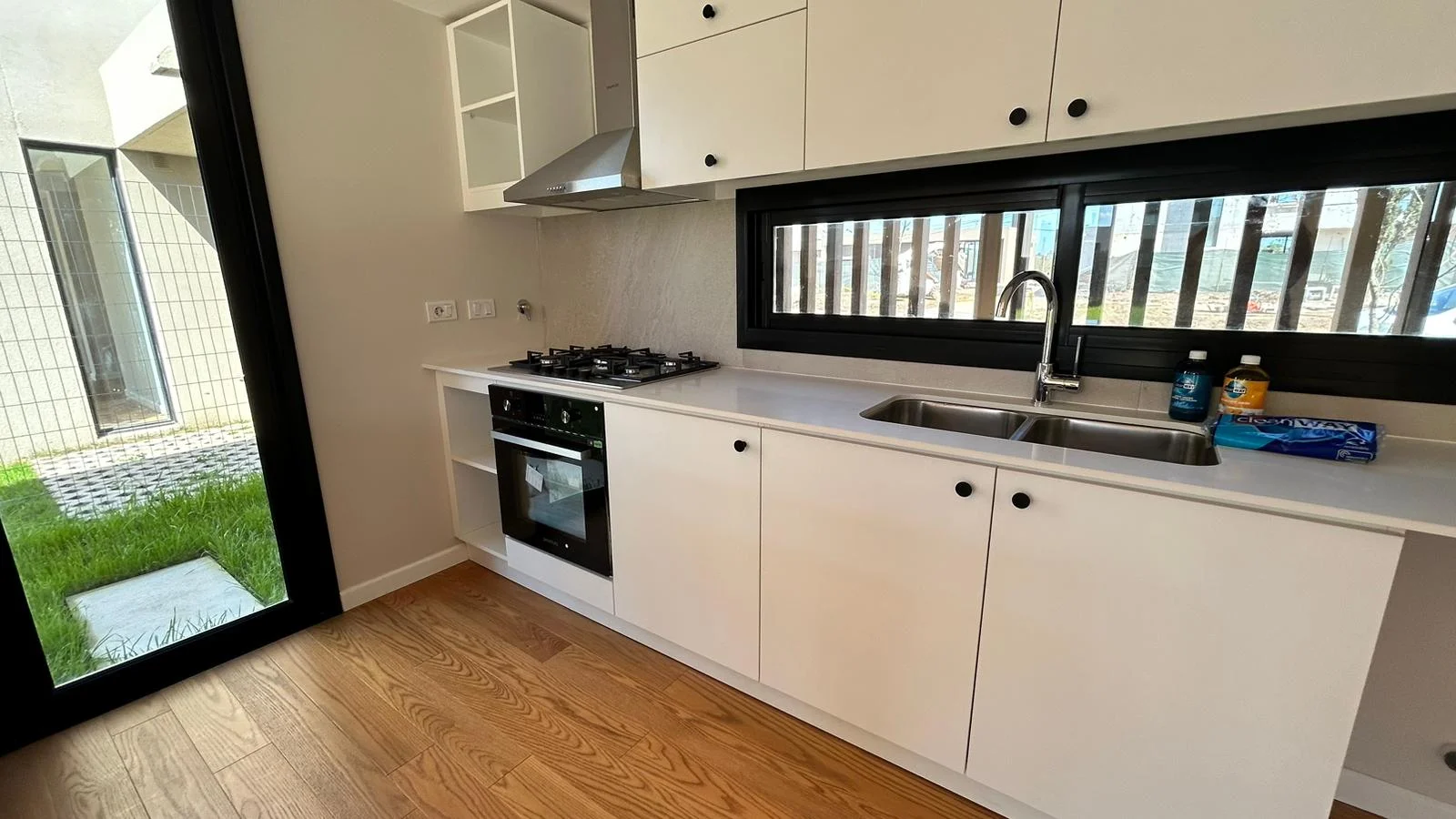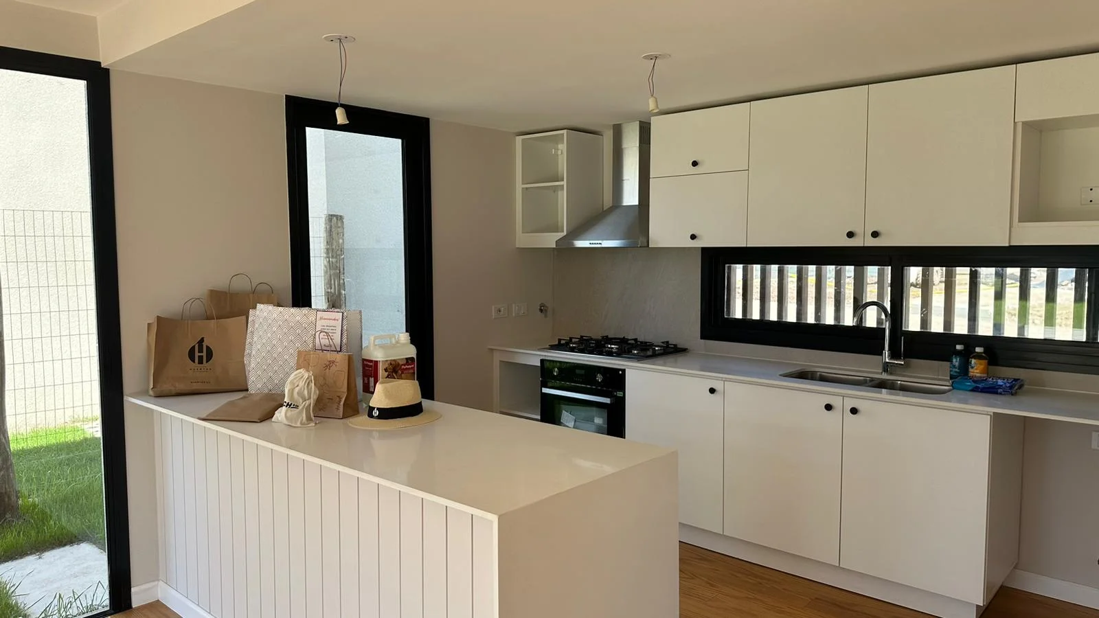 Planta baja: gran living comedor con cocina integrada, muebles bajo y sobre mesada. Estufa a leña. Baño social. Se destaca la luminosidad, amplitud y excelentes terminaciones.