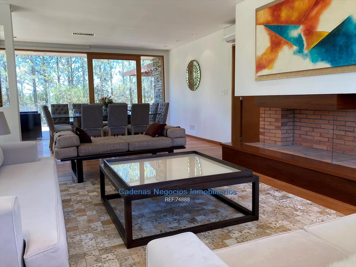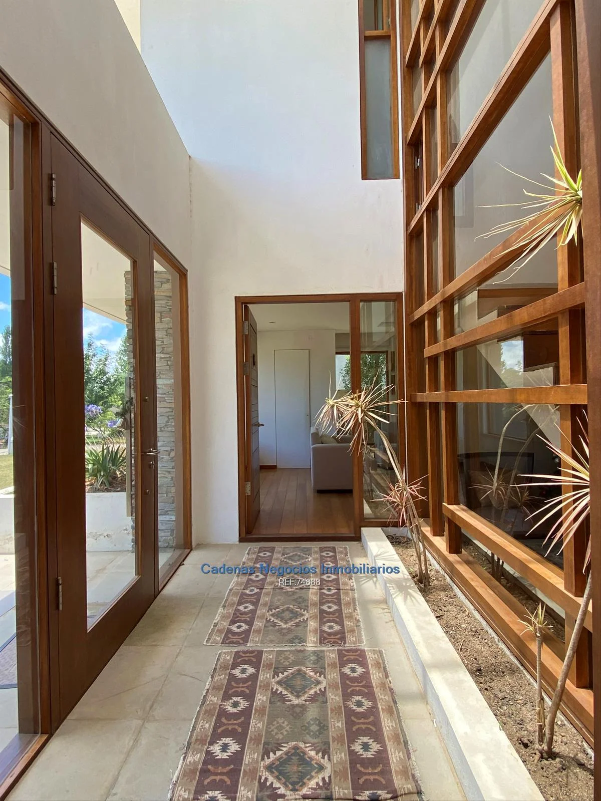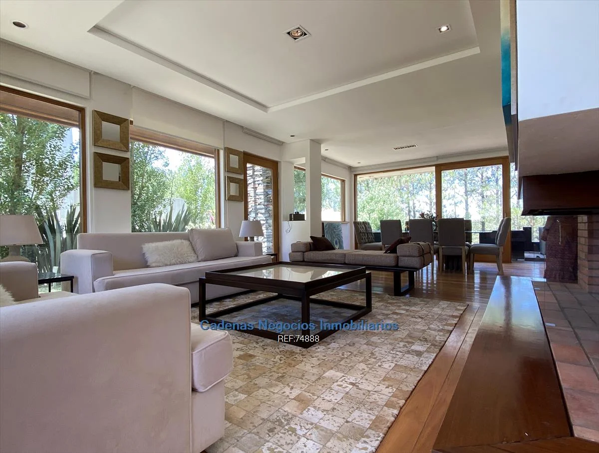 Cuenta con hall de entrada con diseño de doble altura permitiendo así mayor ingreso de luz, living comedor con estufa a leña y estar con estufa de alto rendimiento, ambos cuentan con equipos de aire acondicionado y grandes ventanales de piso a techo que se comunican al jardín. Toilette, despojador. Cocina.