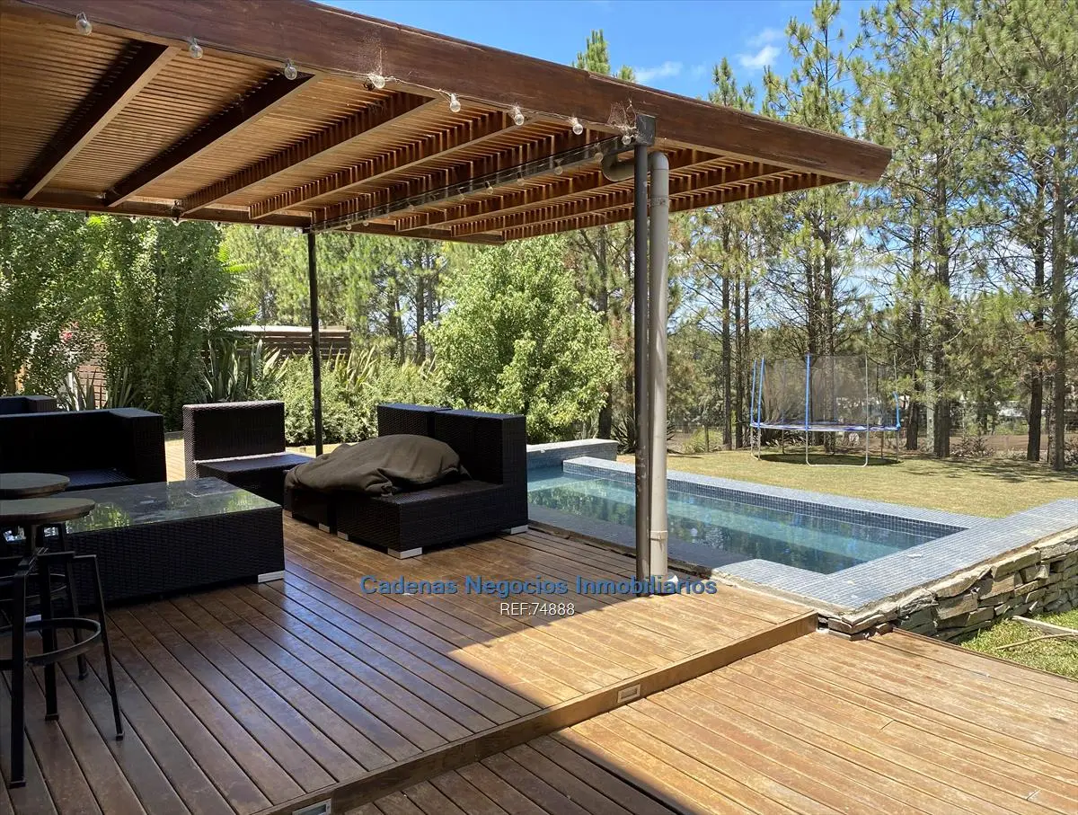 En el exterior: amplio deck con parrillero y piscina con desborde, servicio completo, lavadero, depósitos, cochera techada para 2 autos.