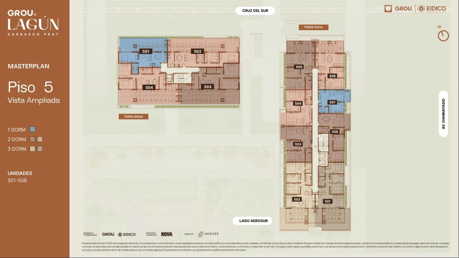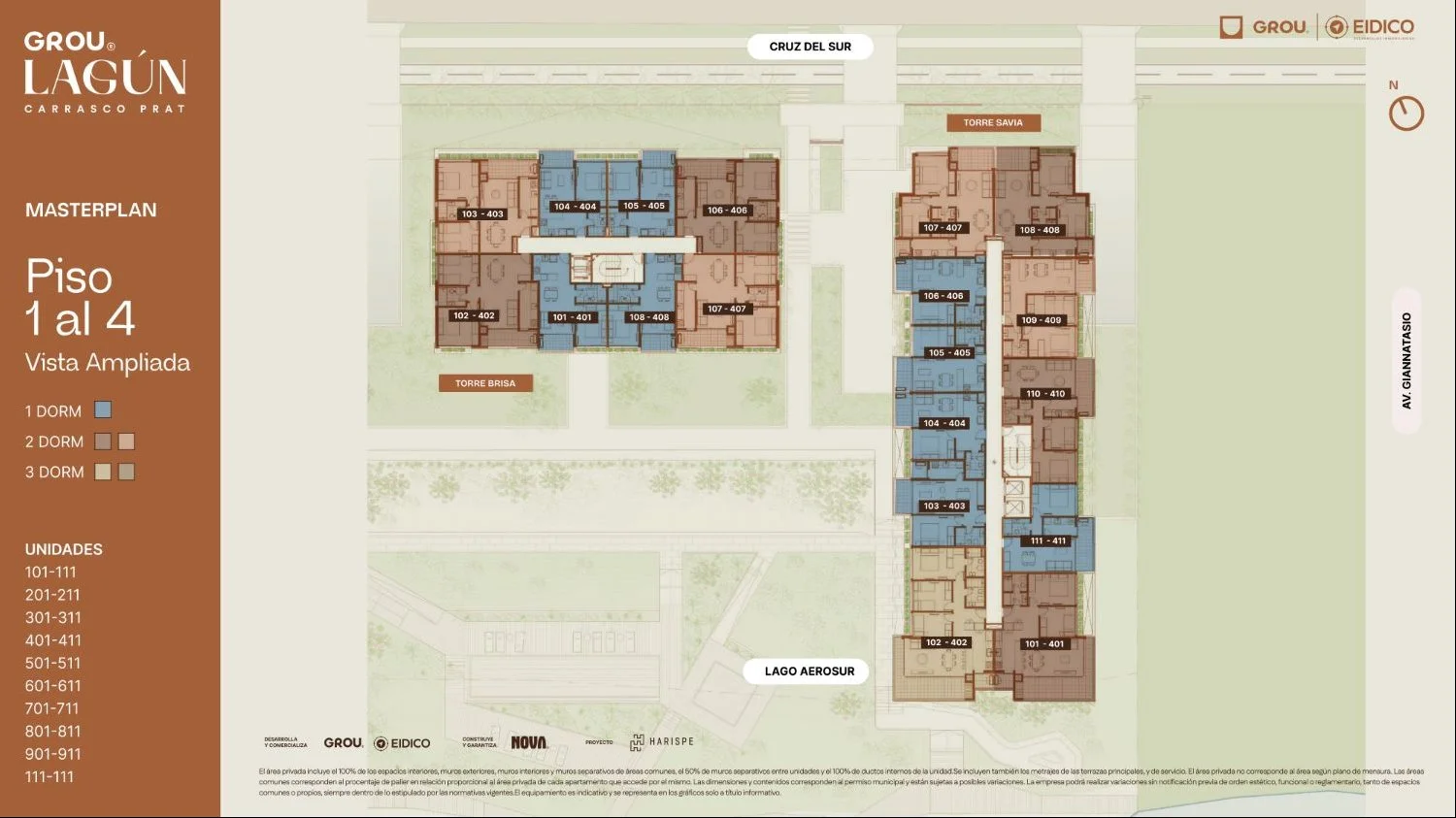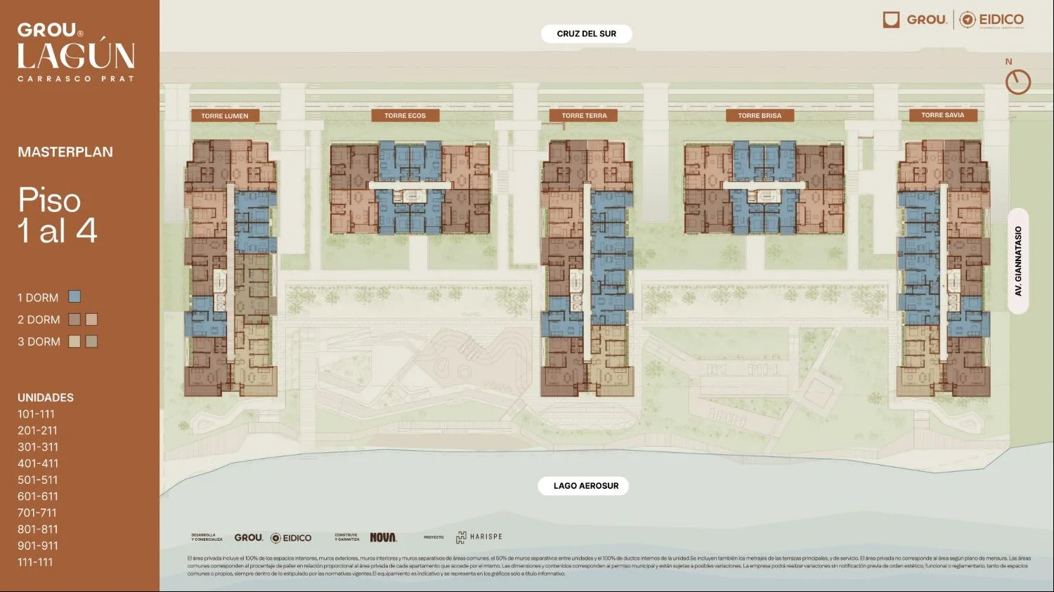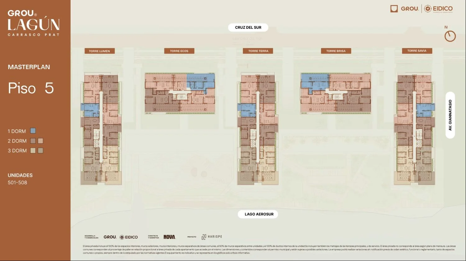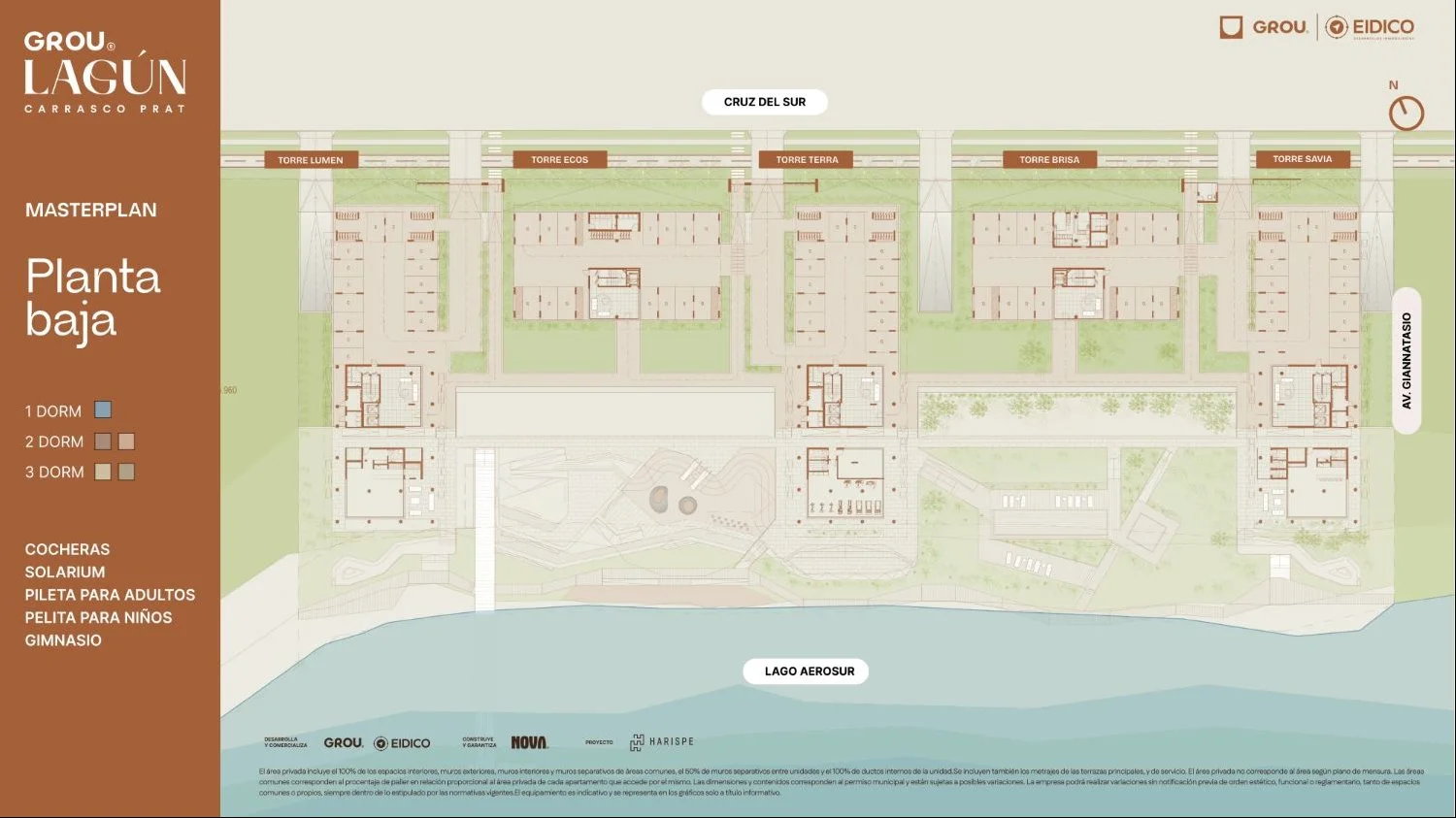 El proyecto general comprende el desarrollo de 5 Torres, con unidades de 1, 2 y 3 Dormitorios.