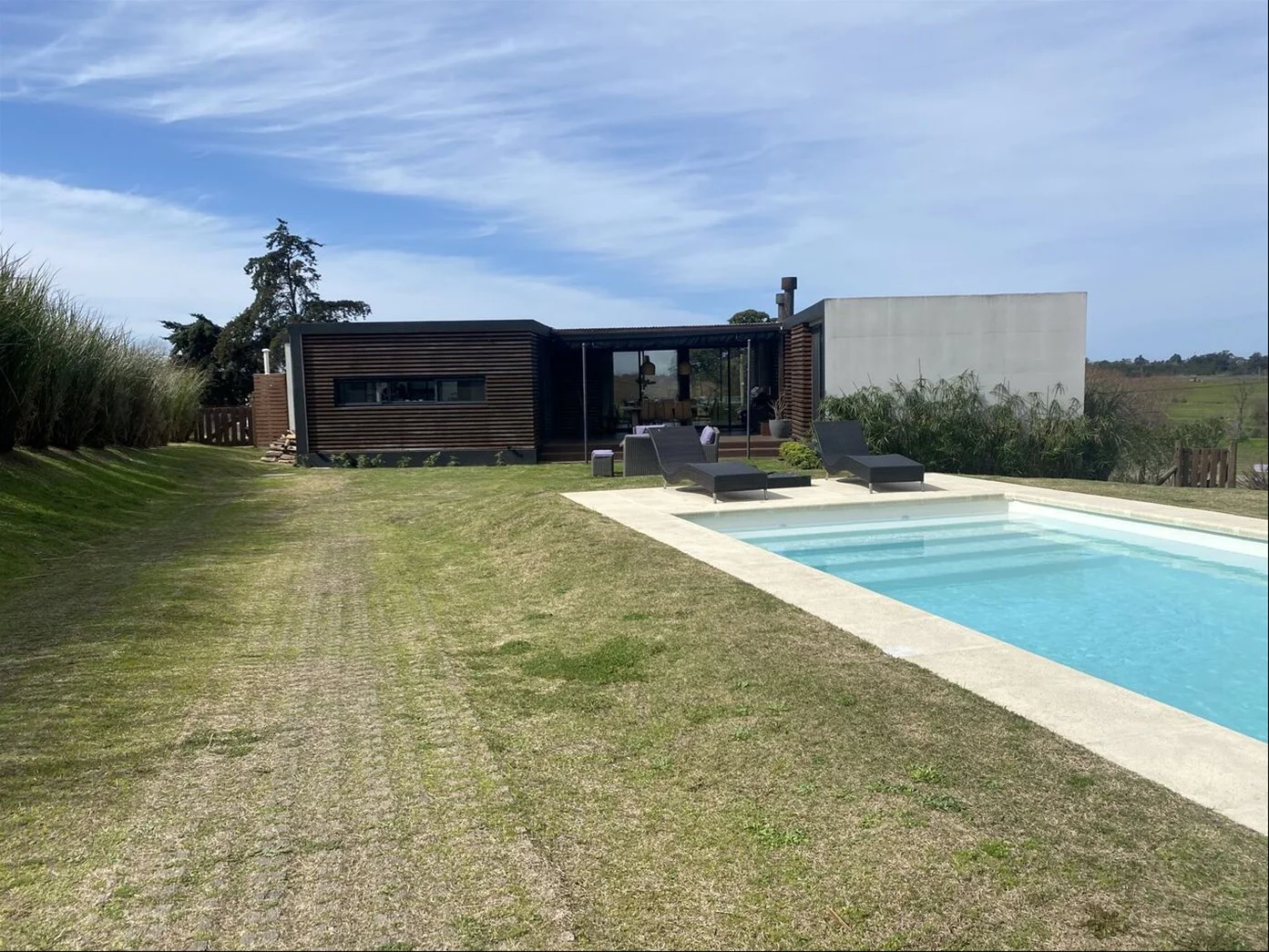 Ofrece un amplio living comedor con estufa a leña, toilette, tres dormitorios —siendo el principal en suite—, además de una gran cocina con isla y dormitorio de servicio completo.
