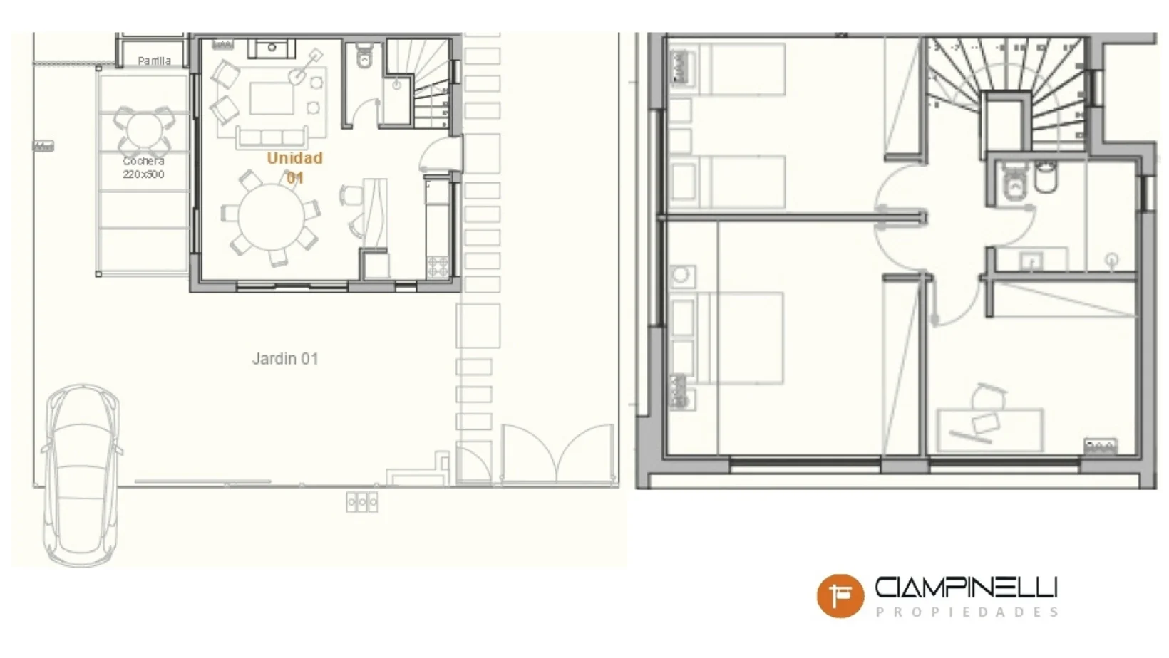 Casa tipo Dúplex en un complejo cerrado muy bien ubicado en Barra de Carrasco, cercano a centro comercial Geant del Parque Roosvelt y a pocos minutos del centro de Carrasco y Aeropuerto. Beneficios tributarios establecidos en la Ley 18.795 de Viviendas Promovidas (inversión privada en viviendas de interés social). Se trata de una propiedad de 110 m2 construidos, siendo 187 m2 de uso exclusivo. Se distribuye en 2 plantas de la siguiente manera: Planta Baja: living comedor con estufa a leña, con amplio ventanal de salida a terraza de parrillero con pérgola y jardín exterior; cocina integrada con barra pasaplatos, mobiliario bajo mesada y superior, espacio exterior para lavarropas, baño social y salida a zona de estacionamiento. Planta Alta: 3 dormitorios con placard y baño completo. Conexión a saneamiento. Calefacción por losa radiante eléctrica con termostatos independientes por ambiente. Aberturas en aluminio con DVH y cortinas de enrollar incorporadas en dormitorios. Pisos de porcelanato y vinílicos símil madera. Revestimientos de paredes en baños y cocina de porcelanato. Mesada de granito, con pileta doble acero inoxidable en cocina. Mesada de mármol en baño de planta alta. Previsión de instalación de extractores en todos los baños. El complejo es conformado por 3 unidades independientes (propiedad horizontal), con sus respectivos espacios exteriores de jardín de uso exclusivo, con cocheras individuales. Unidad 01 - U$ 350.000 Unidad 02 - U$ 325.000 Unidad 03 - U$ 340.000 Entrega prevista para Enero 2027. La propiedad publicada es una unidad modelo. Las medidas y superficies asignadas en la presente, son aproximadas al solo efecto orientativo. Las medidas definitivas surgirán del título de propiedad respectivo.