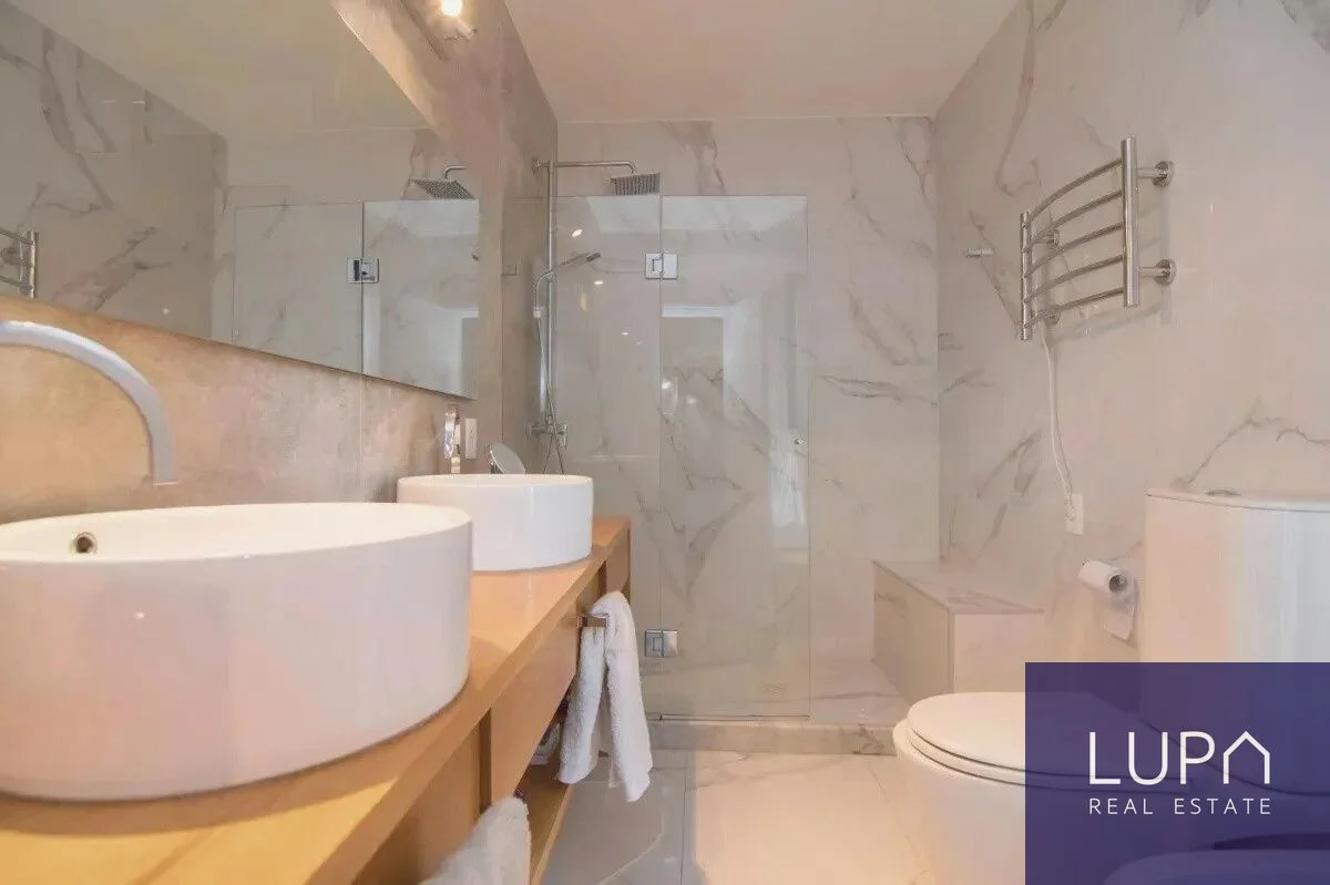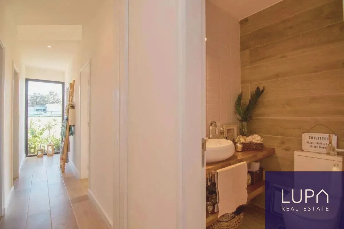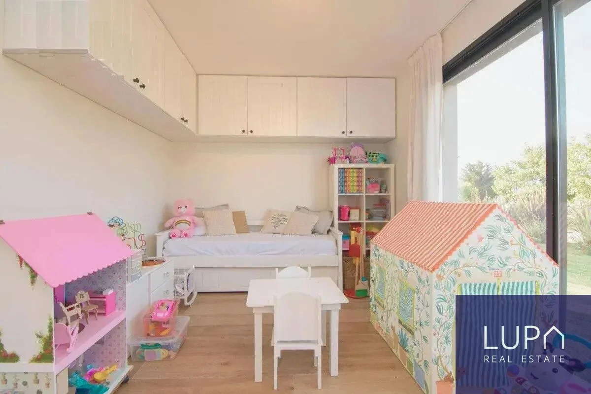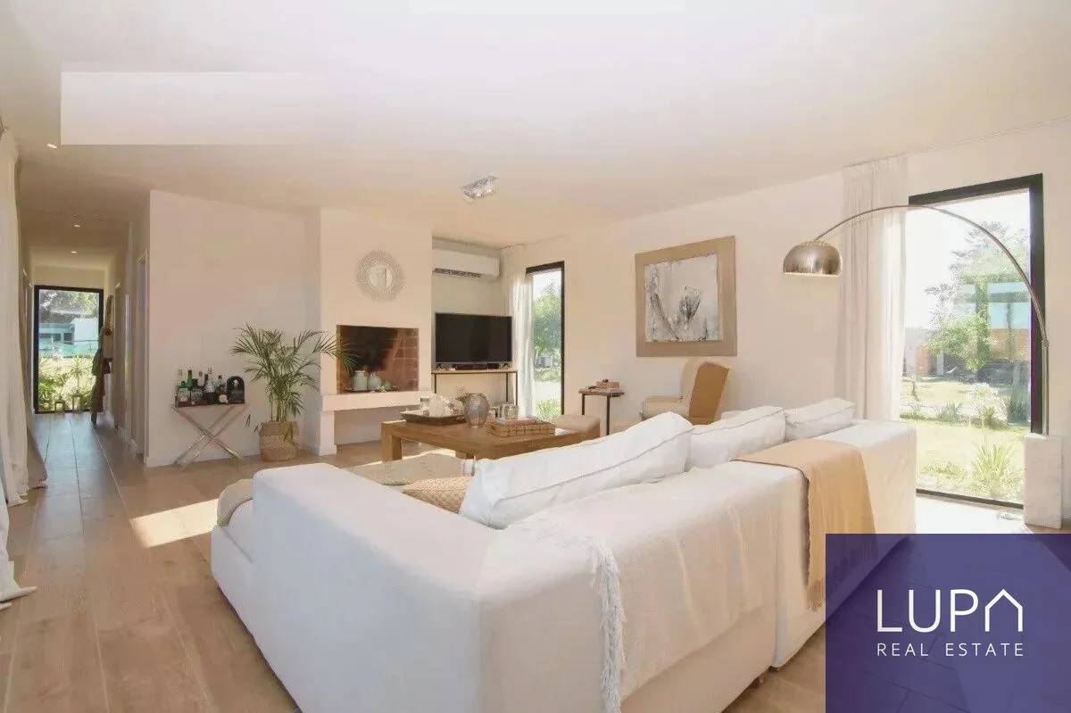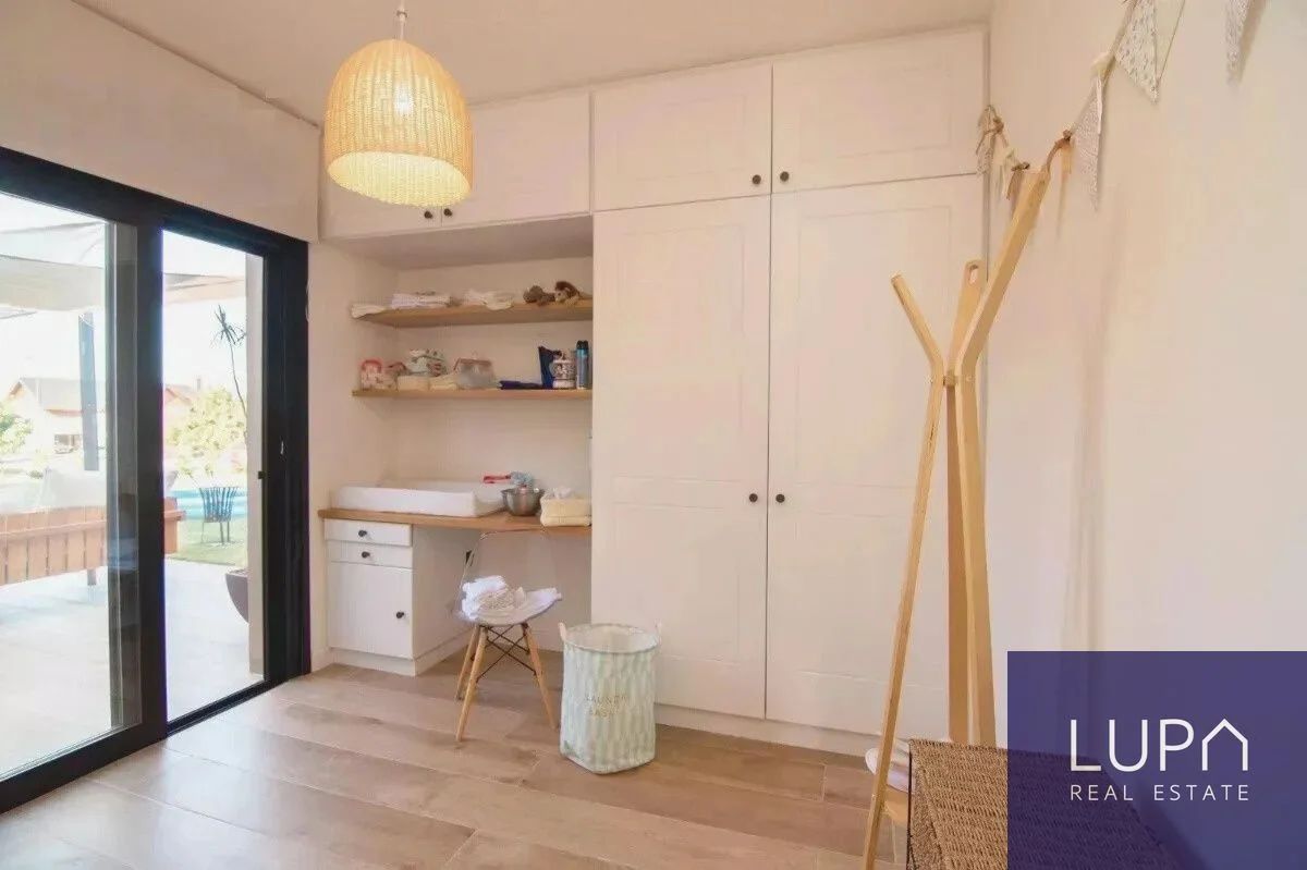 Esta residencia cuenta con cuatro acogedores dormitorios, incluyendo un dormitorio principal en suite con vestidor, y tres baños, uno de ellos equipado con bañera. El sistema de calefacción por loza radiante, alimentado por bomba de calor, garantiza un ambiente cálido y confortable durante todo el año. La calidad en los acabados es evidente, con carpintería a medida en laca, revestimientos y mobiliario de alta gama. Además, el sistema de riego automático y las áreas comunes, que incluyen piscina, cancha de paddle, gimnasio y salón de usos múltiples, complementan la experiencia de vivir en este elegante hogar.