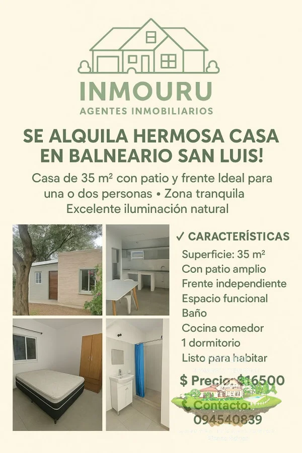 Casa de 35 m² con patio y frente en Balneario San Luis Canelones