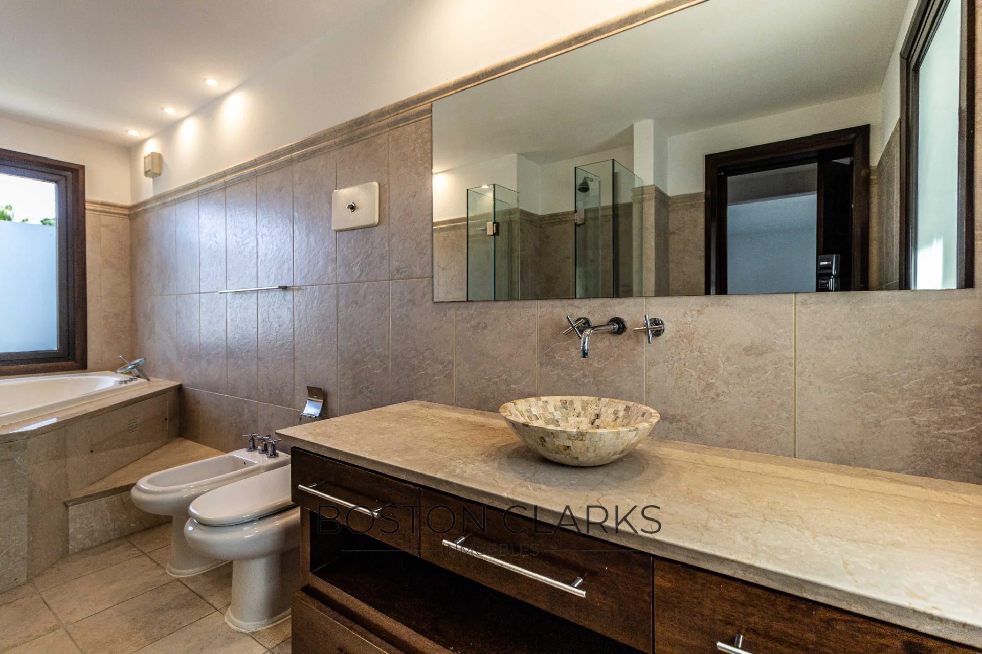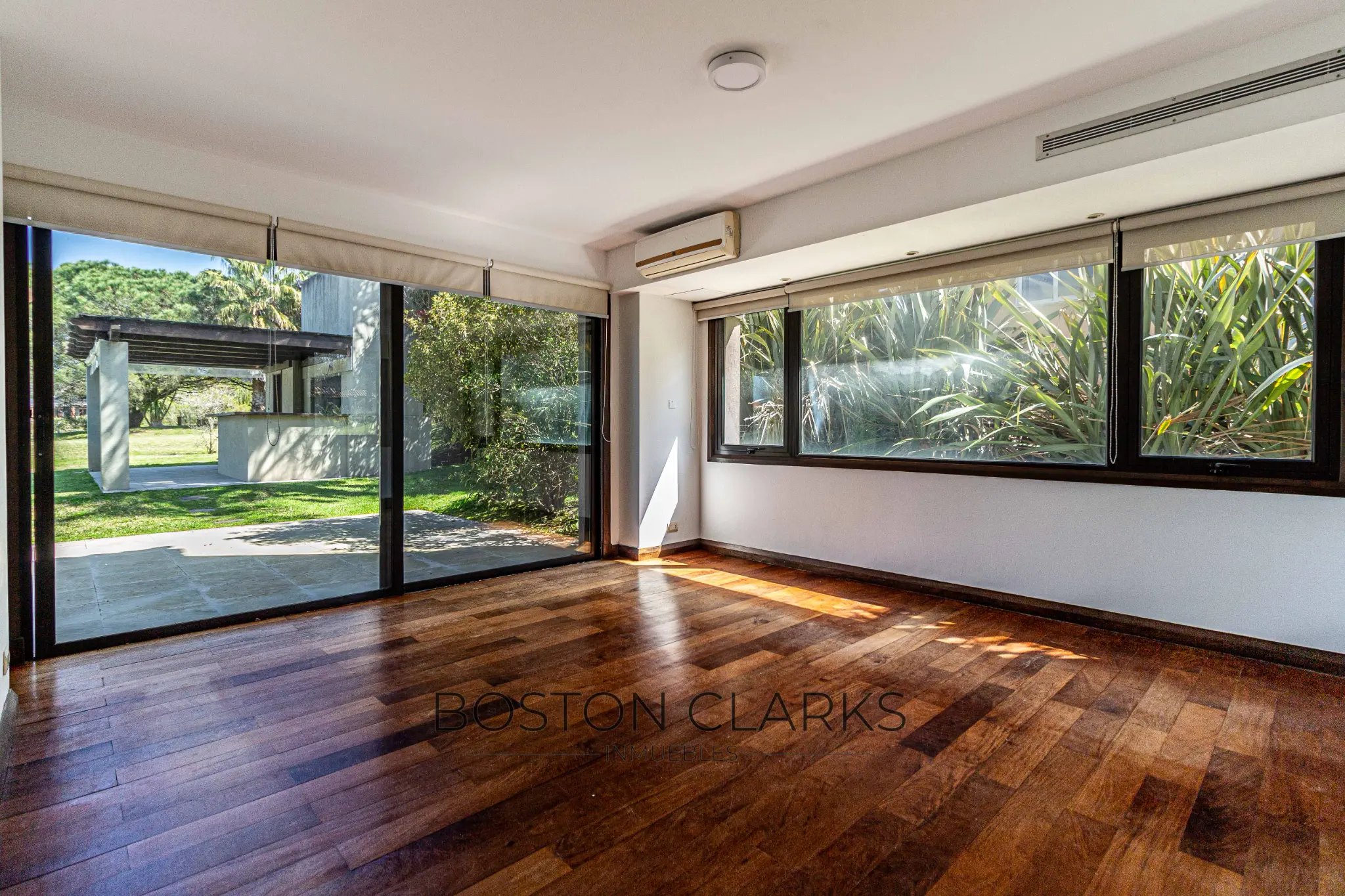 El inmueble posee 300 M² Internos, 1400M² externos, 3 Dormitorios en suite, 3 Baños Completos, Dormitorio de servicio, Toilette, Estufa a leña, Piscina, Amplio patio, Parrillero, Aire acondicionado y Portería 24 hs.