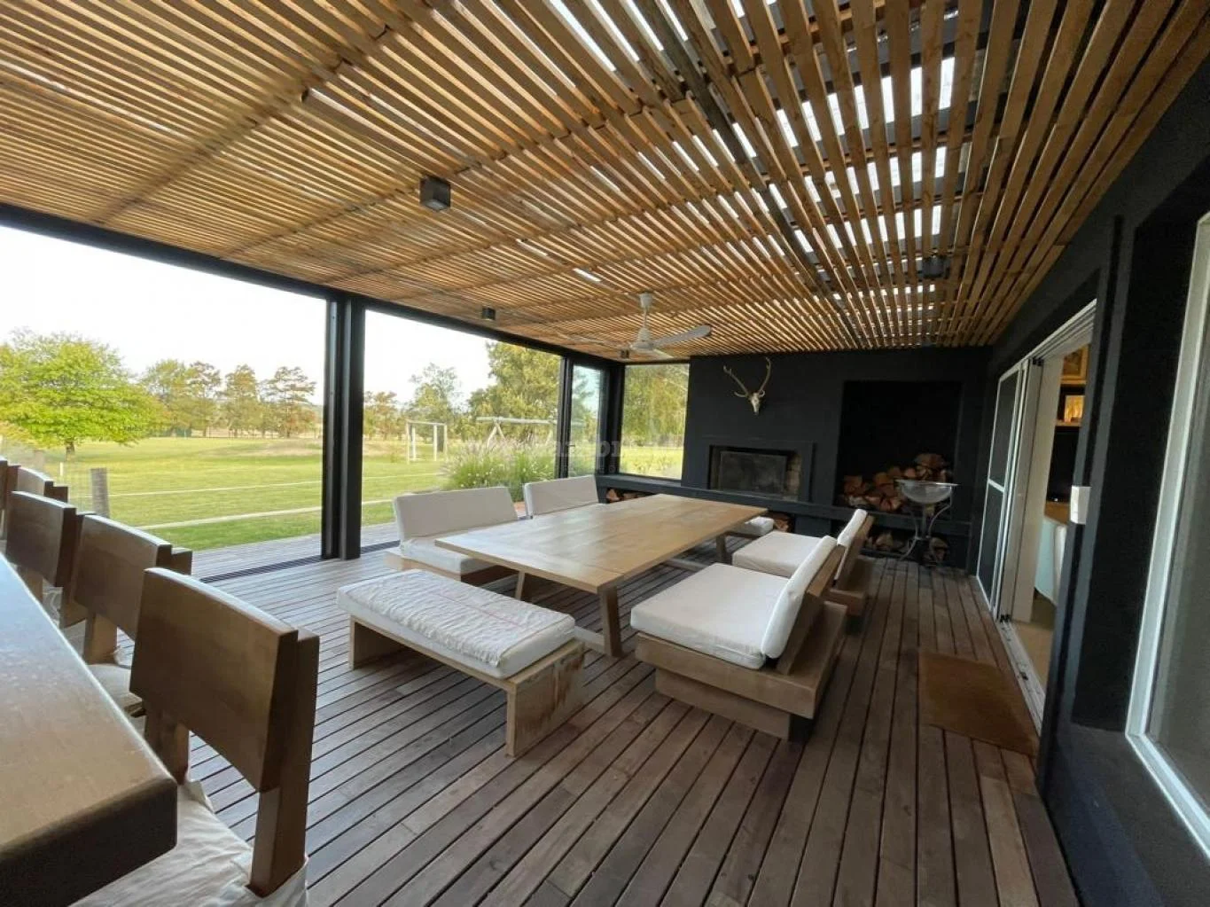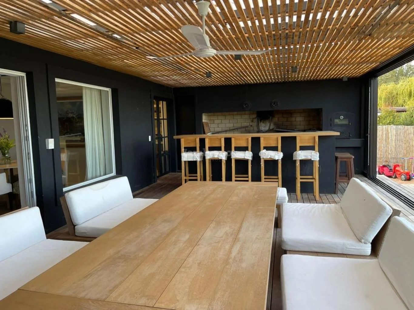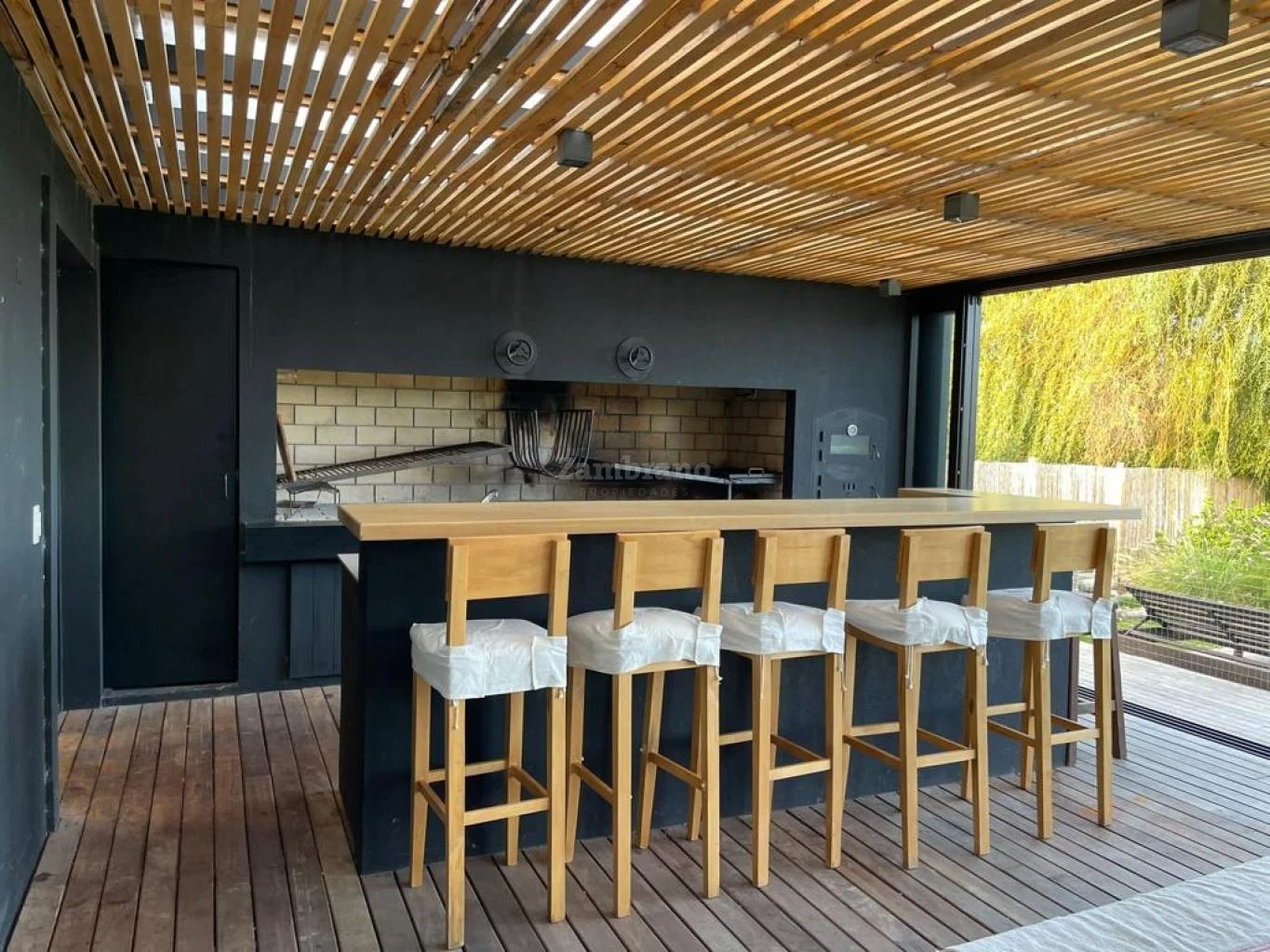 Casa en alquiler en Lomas de la Tahona. Tiene una superficie de terreno de 1.023 m2 y una superficie construida de 285 m2. Cuenta con un amplio living comedor con estufa a leña y salida al jardín, cocina definida con placares bajo y sobre mesada, estar, toilette, servicio completo, dos dormitorios (principal en suite y vestidor), baño completo. Gran jardín con galería con parrillero, piscina. Calefacción: losa radiante eléctrica individual. Portería las 24 horas.